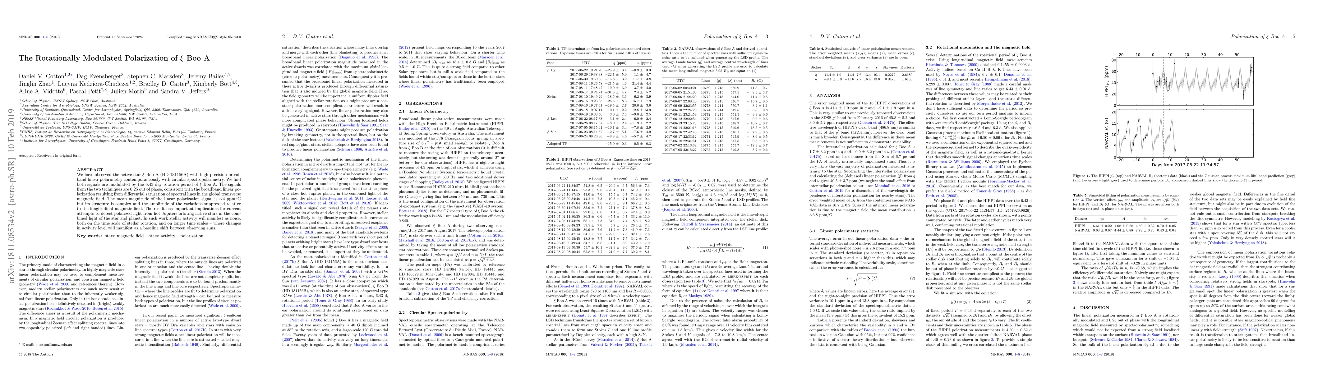 We have observed the active star $\xi$ Boo A (HD 131156A) with high precision broadband linear polarimetry contemporaneously with circular spectropolarimetry. We find both signals are modulated by the 6.43 day rotation period of $\xi$ Boo A. The signals from the two techniques are 0.25 out of phase, consistent with the broadband linear polarization resulting from differential saturation of spectral lines in the global transverse magnetic field. The mean magnitude of the linear polarization signal is ~4 ppm/G but its structure is complex and the amplitude of the variations suppressed relative to the longitudinal magnetic field. The result has important implications for current attempts to detect polarized light from hot Jupiters orbiting active stars in the combined light of the star and planet. In such work stellar activity will manifest as noise, both on the time scale of stellar rotation, and on longer time scales - where changes in activity level will manifest as a baseline shift between observing runs.