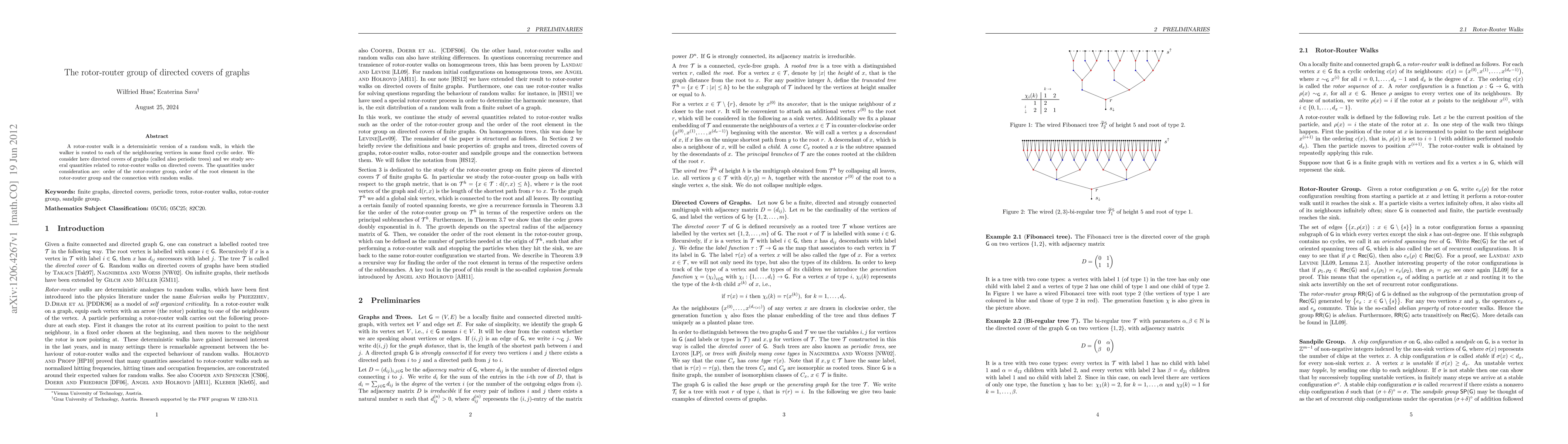 The paper analyzes directed covers of graphs, focusing on rotor-router walks and their associated groups. It derives expressions for the order of the rotor-router group and the order of the root element in these groups using recursive formulas and the explosion formula.