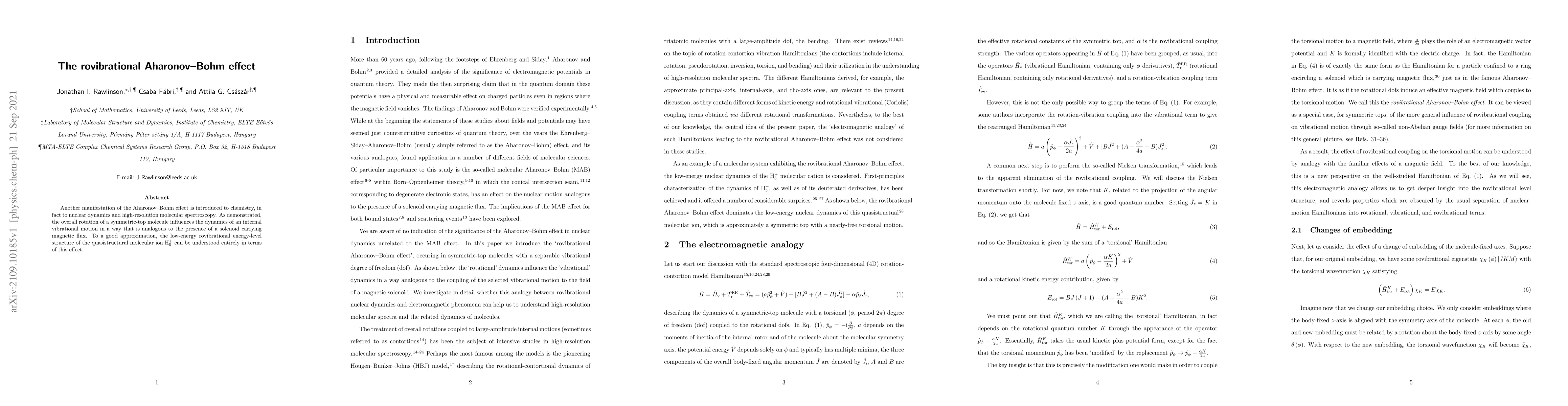 Another manifestation of the Aharonov-Bohm effect is introduced to chemistry, in fact to nuclear dynamics and high-resolution molecular spectroscopy. As demonstrated, the overall rotation of a symmetric-top molecule influences the dynamics of an internal vibrational motion in a way that is analogous to the presence of a solenoid carrying magnetic flux. To a good approximation, the low-energy rovibrational energy-level structure of the quasistructural molecular ion H5+ can be understood entirely in terms of this effect.