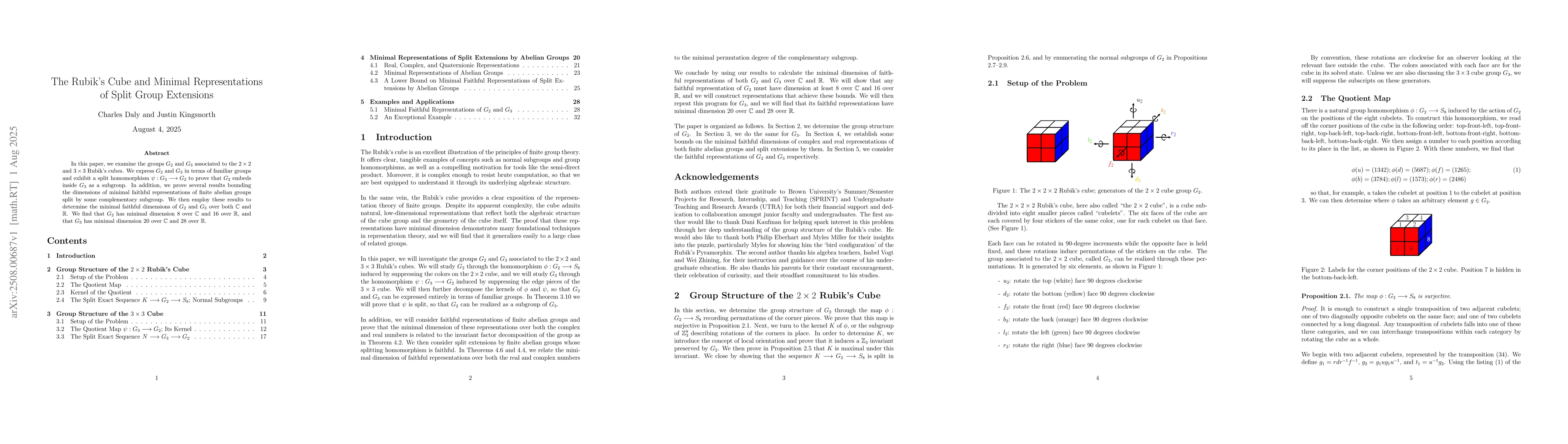 In this paper, we examine the groups $G_2$ and $G_3$ associated to the $2 \times 2$ and $3 \times 3$ Rubik's cubes. We express $G_2$ and $G_3$ in terms of familiar groups and exhibit a split homomorphism $\psi: G_3 \longrightarrow G_2$ to prove that $G_2$ embeds inside $G_3$ as a subgroup. In addition, we prove several results bounding the dimensions of minimal faithful representations of finite abelian groups split by some complementary subgroup. We then employ these results to determine the minimal faithful dimensions of $G_2$ and $G_3$ over both $\mathbb{C}$ and $\mathbb{R}$. We find that $G_2$ has minimal dimension 8 over $\mathbb{C}$ and 16 over $\mathbb{R}$, and that $G_3$ has minimal dimension 20 over $\mathbb{C}$ and 28 over $\mathbb{R}$.