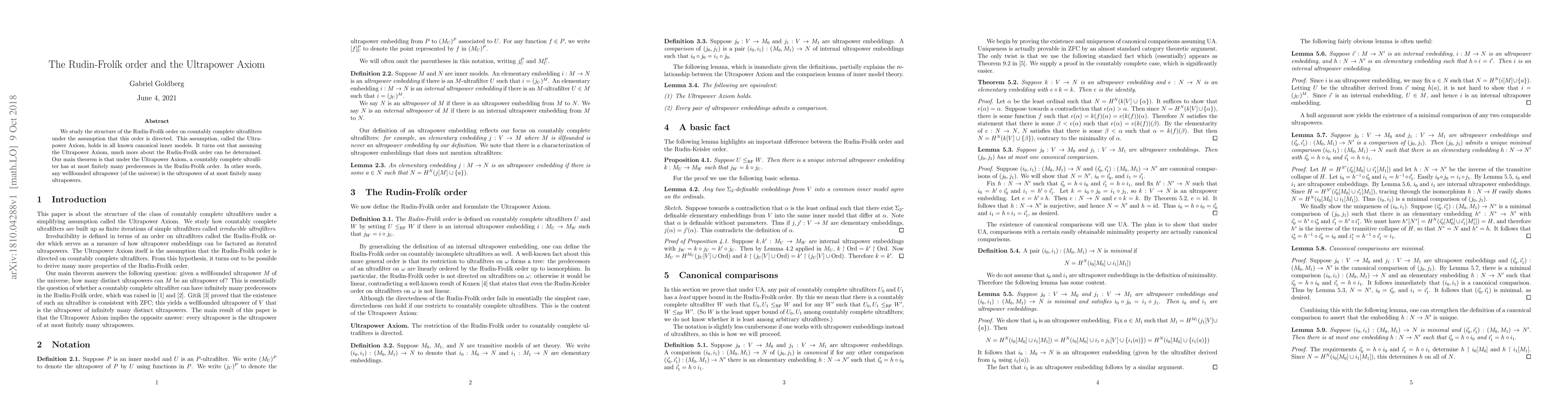 This paper investigates the Rudin-Frolik order on countably complete ultrafilters under the Ultrapower Axiom, revealing that countably complete ultrafilters have at most finitely many predecessors in this order. The study concludes that under this axiom, any wellfounded ultrapower is the ultrapower of at most finitely many ultrapowers.