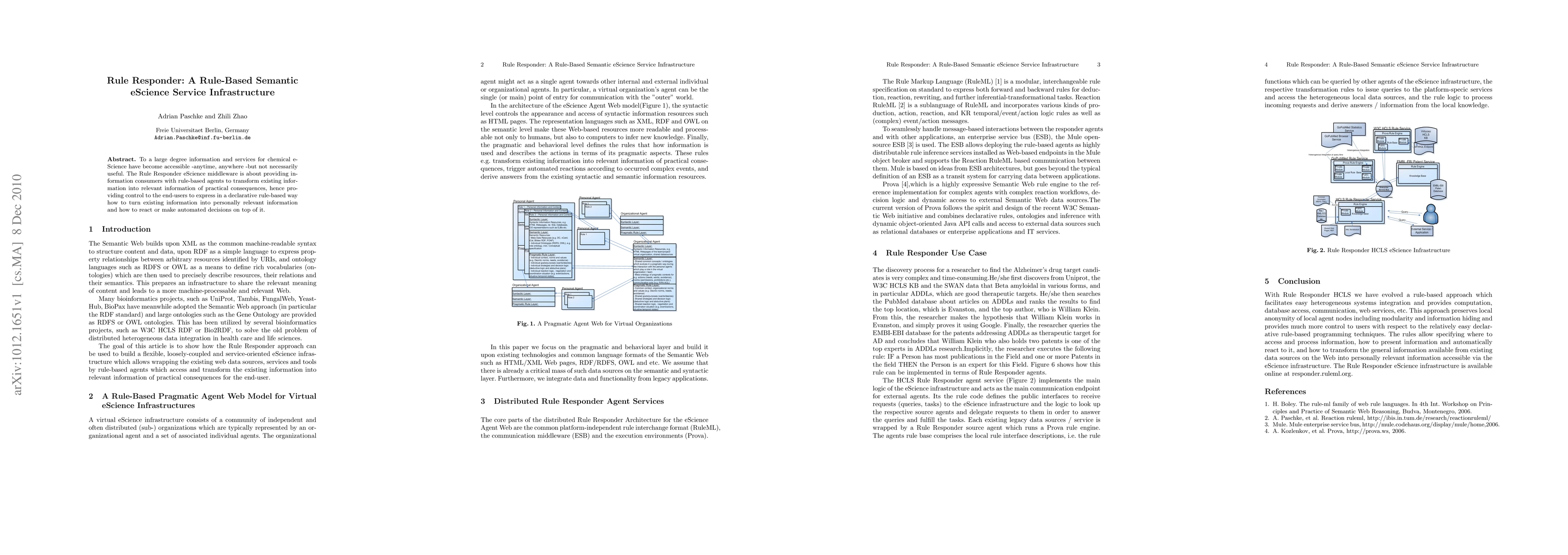 The Rule Responder eScience Infrastructure helps users transform existing information into relevant, practical data through rule-based agents, giving them control over how to use the information. This infrastructure enables users to express their needs in a declarative way and make automated decisions.