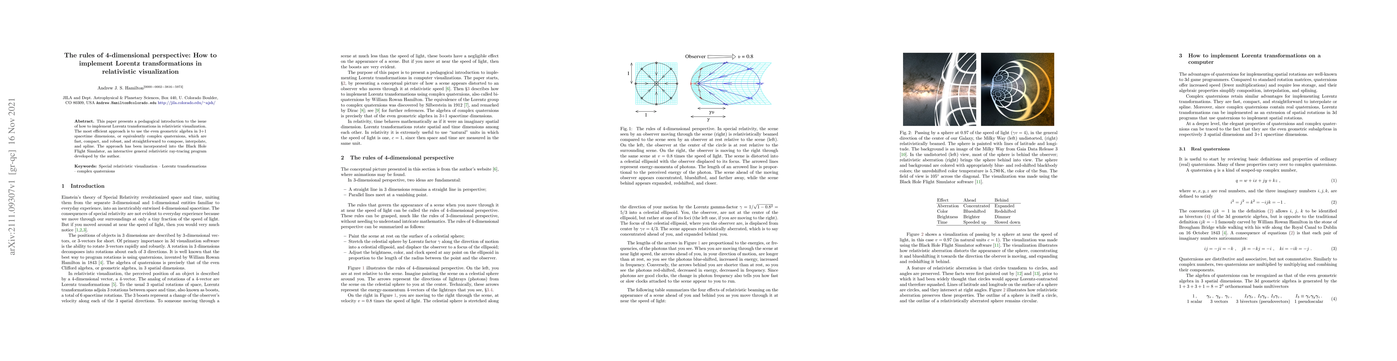 Researchers found that using even geometric algebra or complex quaternions is an efficient way to implement Lorentz transformations in relativistic visualization, allowing for fast and compact rendering of 4D scenes.