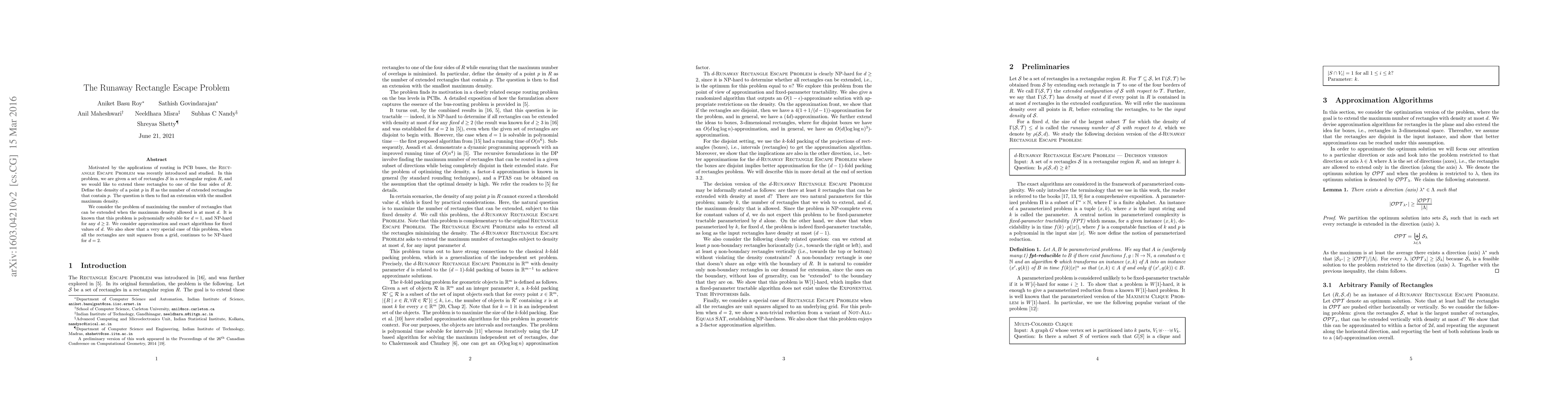 Researchers studied the Rectangle Escape Problem, where rectangles are extended to sides of a rectangular region with varying density limits, finding that maximizing extensions is NP-hard for $d geq 2$ but solvable in polynomial time for $d = 1$.