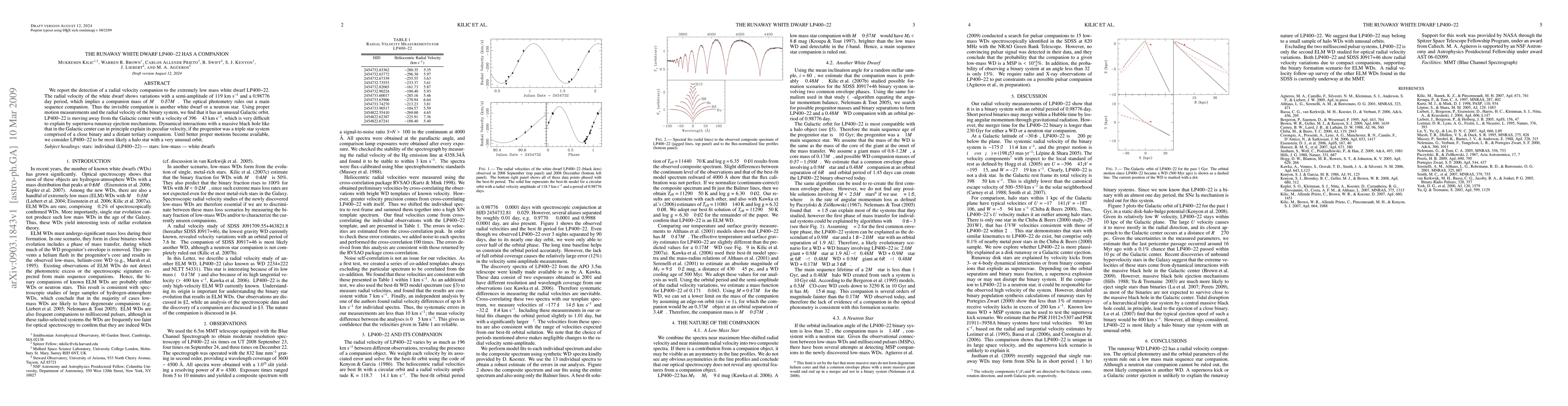 The paper reports the discovery of a radial velocity companion to the low-mass white dwarf LP400-22, which is moving unusually fast away from the Galactic center. The companion, inferred to be another white dwarf or neutron star, suggests a peculiar Galactic orbit potentially explained by a dynamical interaction with a massive black hole.