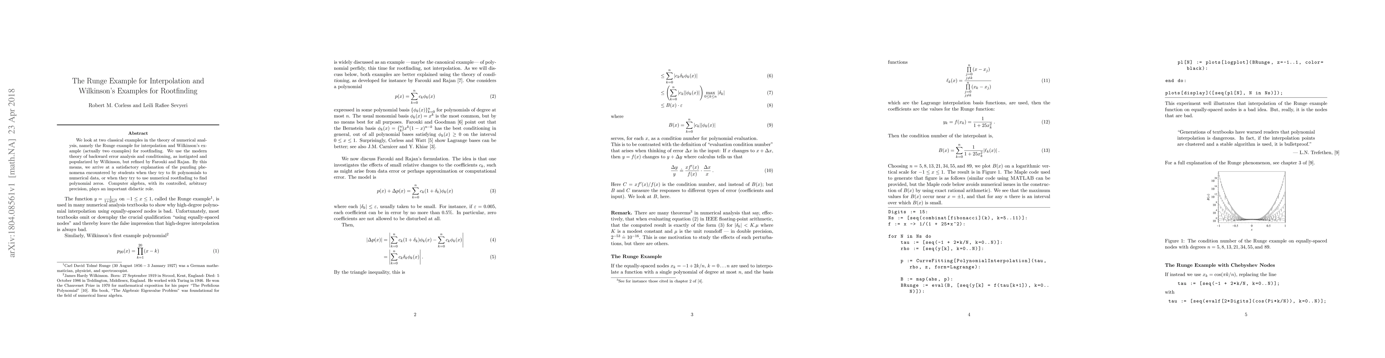 This paper explains two classic numerical analysis examples using modern theory of backward error analysis and conditioning, providing a satisfactory explanation for puzzling phenomena encountered in interpolation and rootfinding.