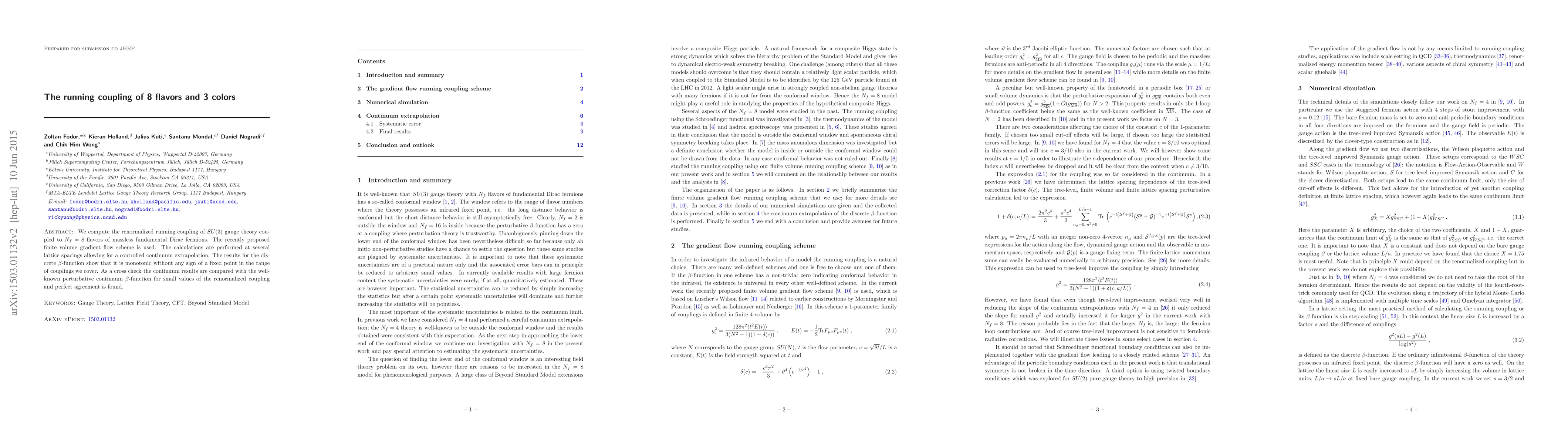 This paper computes the running coupling of SU(3) gauge theory with 8 massless flavors using the finite volume gradient flow scheme, showing a monotonic beta-function without a fixed point. Results match well-known perturbative predictions for small couplings.