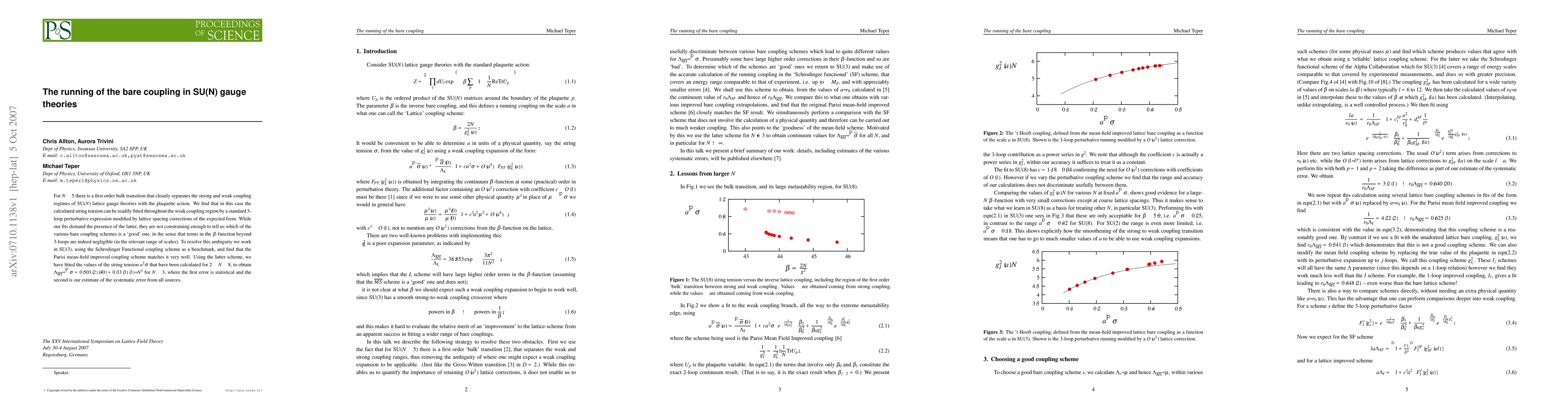 Researchers found a first-order transition in SU(N) gauge theories that separates strong and weak coupling regimes, and they developed a method to fit string tension values for N=8 to N=3 by adjusting the bare coupling scheme.