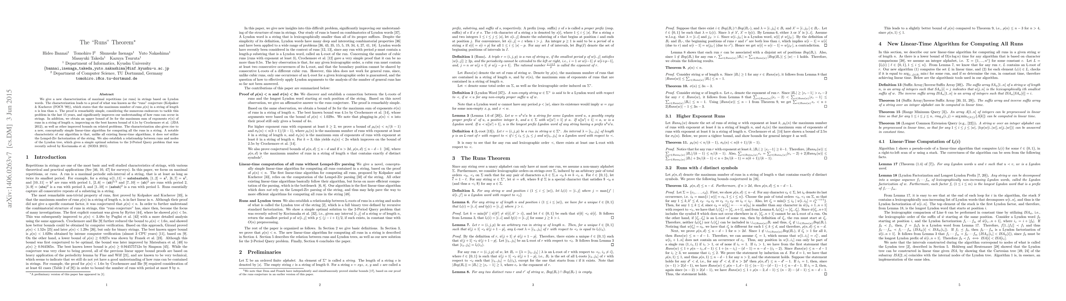 We give a new characterization of maximal repetitions (or runs) in strings based on Lyndon words. The characterization leads to a proof of what was known as the "runs" conjecture (Kolpakov \& Kucherov (FOCS '99)), which states that the maximum number of runs $\rho(n)$ in a string of length $n$ is less than $n$. The proof is remarkably simple, considering the numerous endeavors to tackle this problem in the last 15 years, and significantly improves our understanding of how runs can occur in strings. In addition, we obtain an upper bound of $3n$ for the maximum sum of exponents $\sigma(n)$ of runs in a string of length $n$, improving on the best known bound of $4.1n$ by Crochemore et al. (JDA 2012), as well as other improved bounds on related problems. The characterization also gives rise to a new, conceptually simple linear-time algorithm for computing all the runs in a string. A notable characteristic of our algorithm is that, unlike all existing linear-time algorithms, it does not utilize the Lempel-Ziv factorization of the string. We also establish a relationship between runs and nodes of the Lyndon tree, which gives a simple optimal solution to the 2-Period Query problem that was recently solved by Kociumaka et al. (SODA 2015).