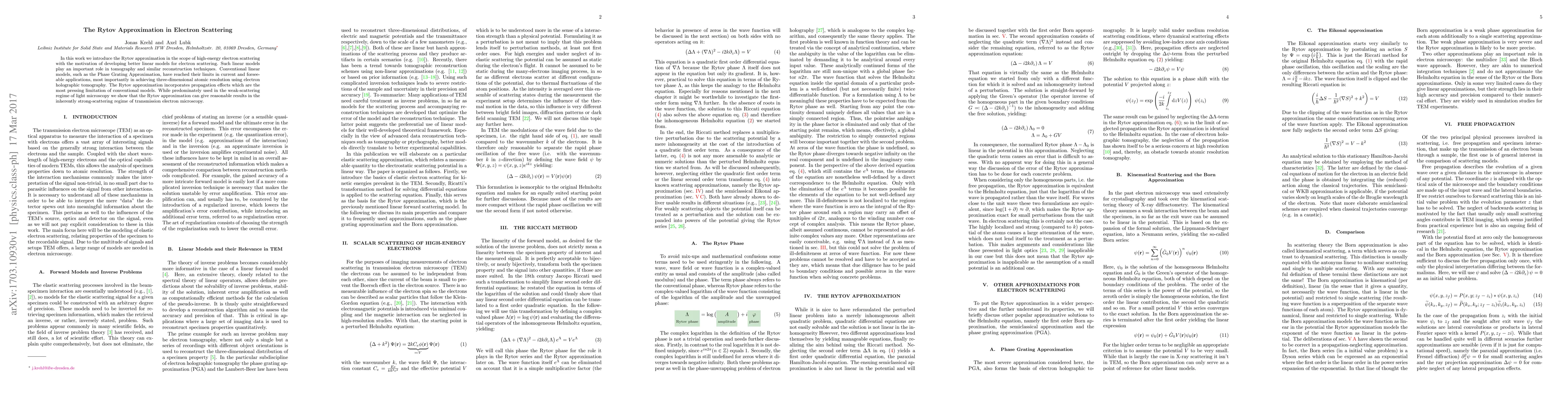 Researchers introduce the Rytov approximation to improve linear models for electron scattering in high-energy electron microscopy, overcoming current limitations in achieving three-dimensional atomic resolution.