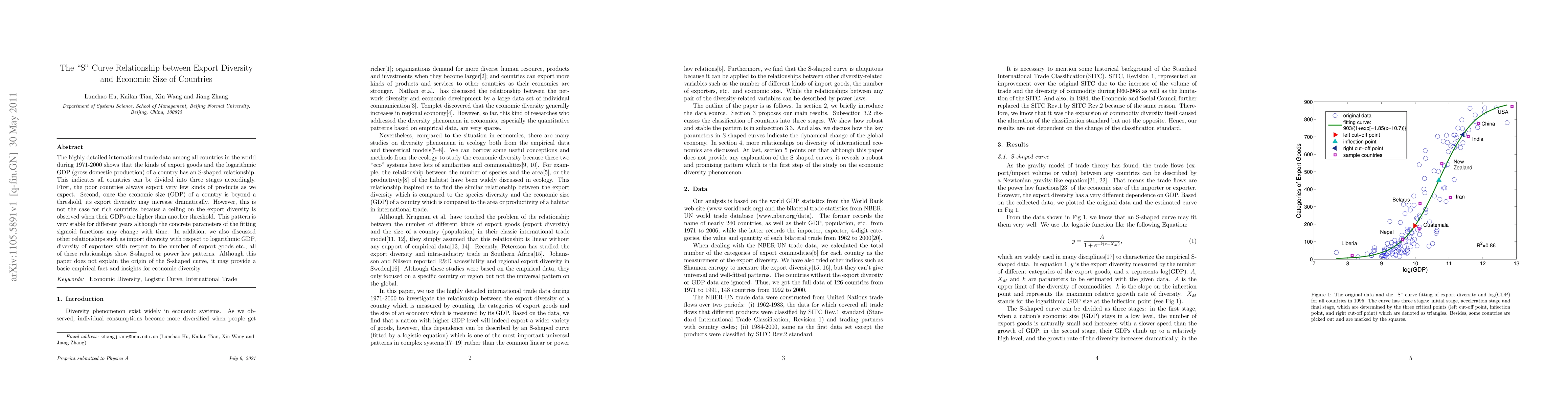 A 1971-2000 study finds that countries' export diversity and economic size follow an S-shaped relationship, with poor countries exporting few goods, rich countries reaching a ceiling, and mid-tier countries experiencing dramatic increases in diversity. The findings suggest three stages of economic growth linked to export diversity.