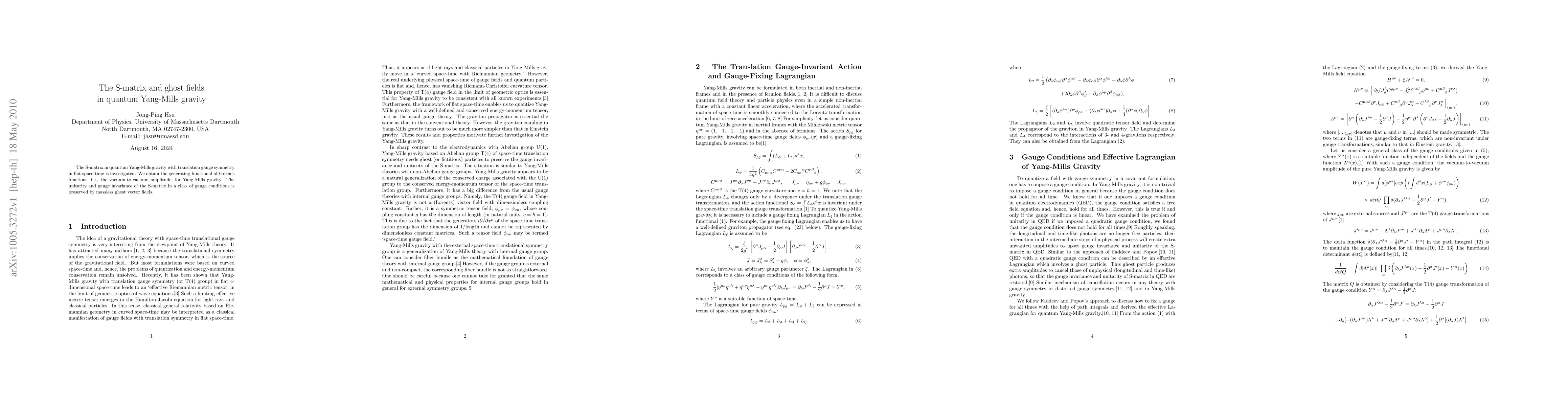 This paper investigates the S-matrix in quantum Yang-Mills gravity, deriving the generating functional for Green's functions and demonstrating that the unitarity and gauge invariance of the S-matrix are maintained by massless ghost vector fields.