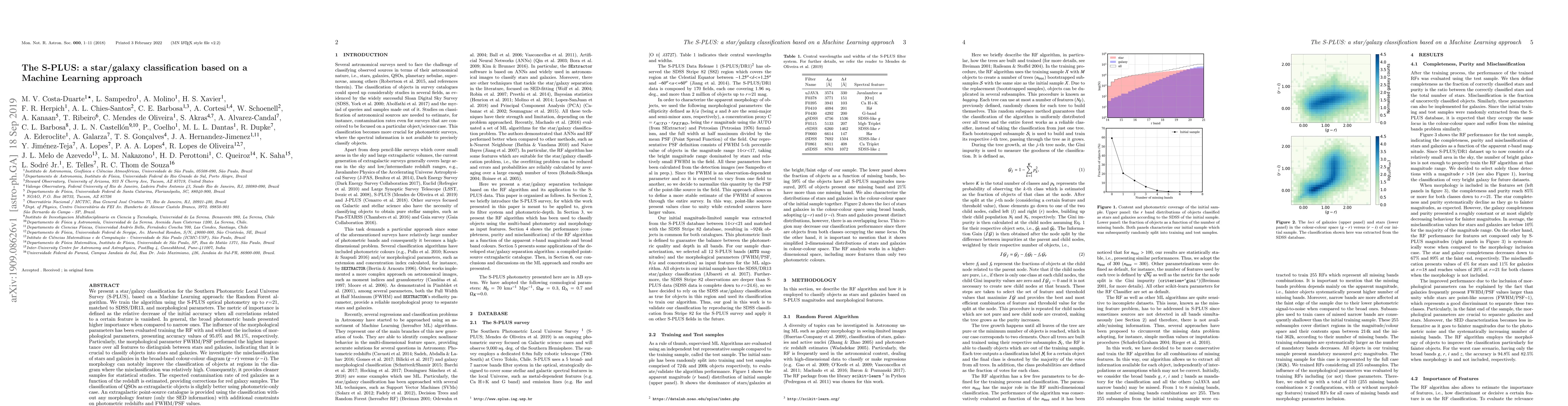 This paper introduces a star/galaxy classification method for the S-PLUS survey using a Random Forest machine learning algorithm, achieving 95% accuracy with morphological features. The FWHM/PSF morphological parameter is identified as the most critical feature for distinguishing between stars and galaxies, significantly improving classification accuracy.