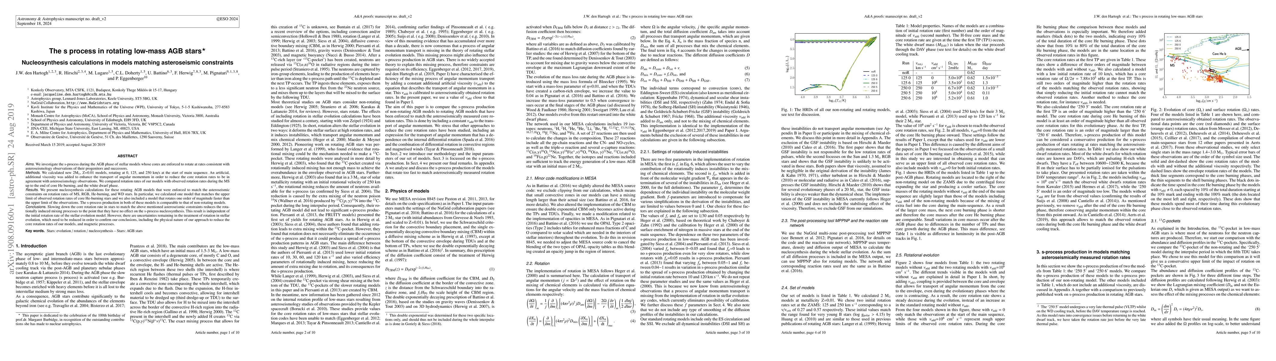 Research on rotating low-mass AGB stars found that slowing down core rotation rates has no effect on s-process nucleosynthesis. This suggests that magnetic processes may play a role in mixing elements during this stage of stellar evolution.