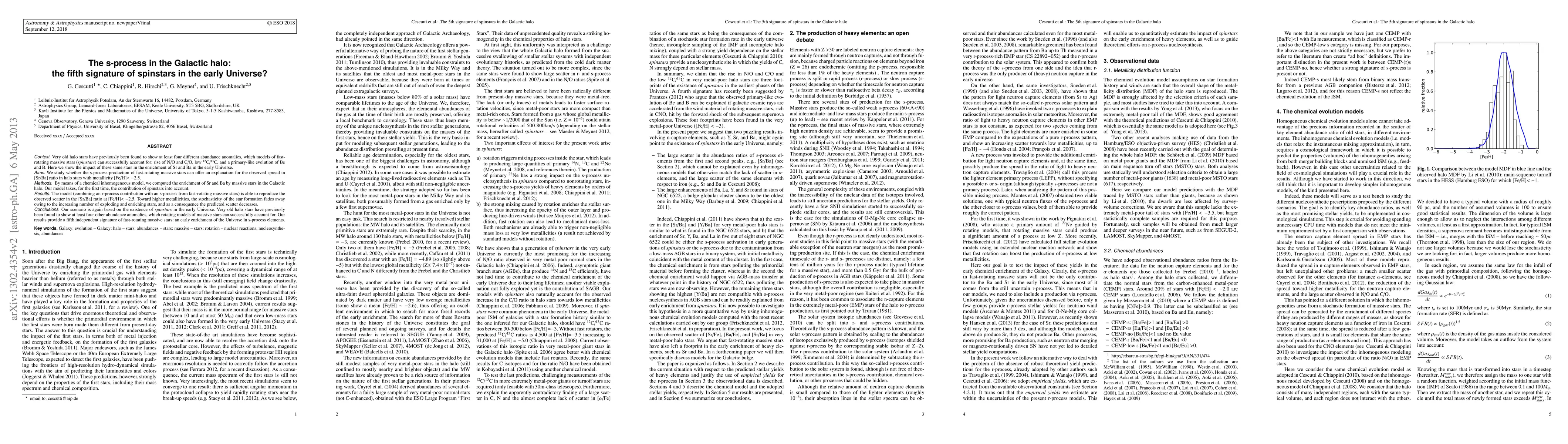 This paper investigates the impact of fast rotating massive stars, termed spinstars, on the s-process enrichment of Sr and Ba in very old Galactic halo stars. It finds that spinstars can explain the observed scatter in the [Sr/Ba] ratio in low-metallicity halo stars, providing a fifth signature supporting the existence of spinstars in the early Universe.