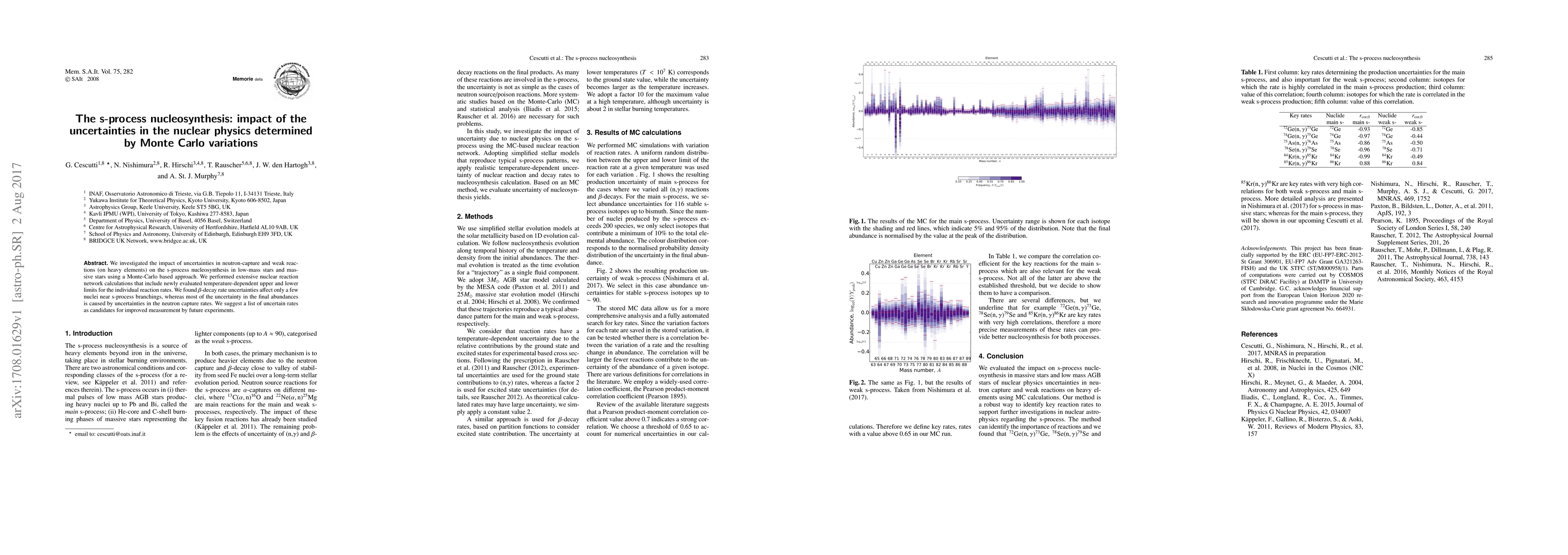 We investigated the impact of uncertainties in neutron-capture and weak reactions (on heavy elements) on the s-process nucleosynthesis in low-mass stars and massive stars using a Monte-Carlo based approach. We performed extensive nuclear reaction network calculations that include newly evaluated temperature-dependent upper and lower limits for the individual reaction rates. We found beta-decay rate uncertainties affect only a few nuclei near s-process branchings, whereas most of the uncertainty in the final abundances is caused by uncertainties in the neutron capture rates. We suggest a list of uncertain rates as candidates for improved measurement by future experiments.
