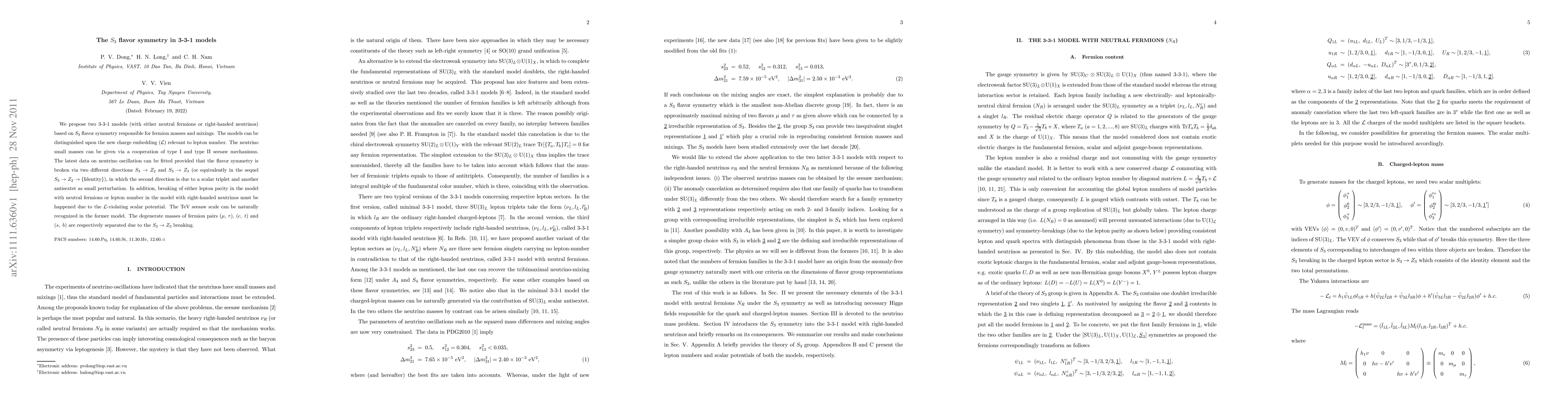We propose two 3-3-1 models (with either neutral fermions or right-handed neutrinos) based on S_3 flavor symmetry responsible for fermion masses and mixings. The models can be distinguished upon the new charge embedding (\mathcal{L}) relevant to lepton number. The neutrino small masses can be given via a cooperation of type I and type II seesaw mechanisms. The latest data on neutrino oscillation can be fitted provided that the flavor symmetry is broken via two different directions S_3 \rightarrow Z_2 and S_3 \rightarrow Z_3 (or equivalently in the sequel S_3 \rightarrow Z_2 \rightarrow Identity), in which the second direction is due to a scalar triplet and another antisextet as small perturbation. In addition, breaking of either lepton parity in the model with neutral fermions or lepton number in the model with right-handed neutrinos must be happened due to the \mathcal{L}-violating scalar potential. The TeV seesaw scale can be naturally recognized in the former model. The degenerate masses of fermion pairs (\mu, \tau), (c, t) and (s, b) are respectively separated due to the S_3 \rightarrow Z_3 breaking.