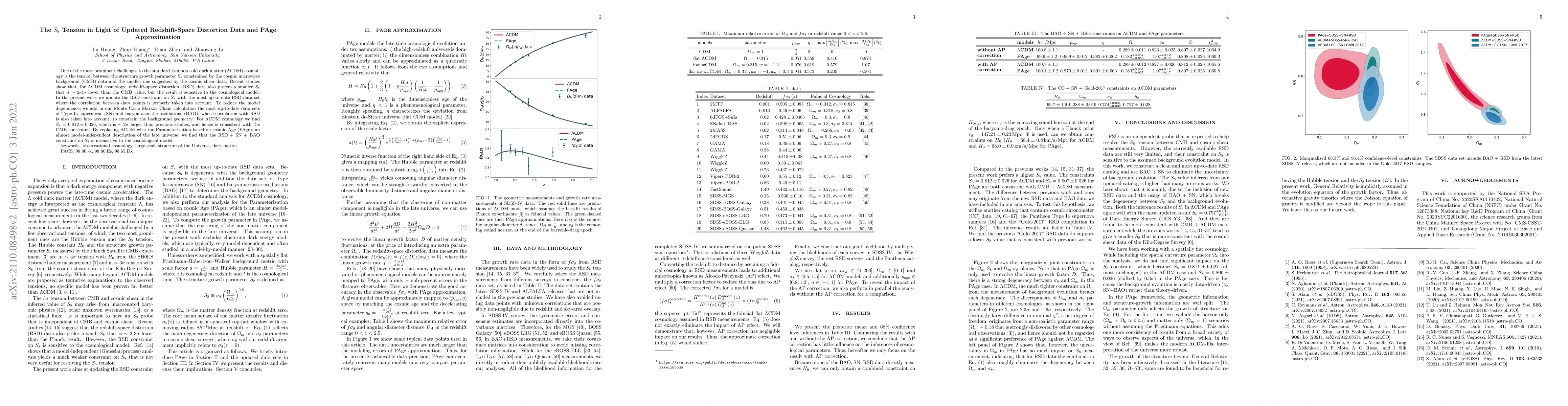 This paper updates the redshift-space distortion (RSD) constraint on the structure growth parameter $S_8$, finding $S_8 = 0.812 \pm 0.026$ within $\Lambda$CDM cosmology, which is consistent with the cosmic microwave background (CMB) value. Using the Parameterization based on cosmic Age (PAge), the authors show that the RSD + SN + BAO constraint on $S_8$ is model-independent.