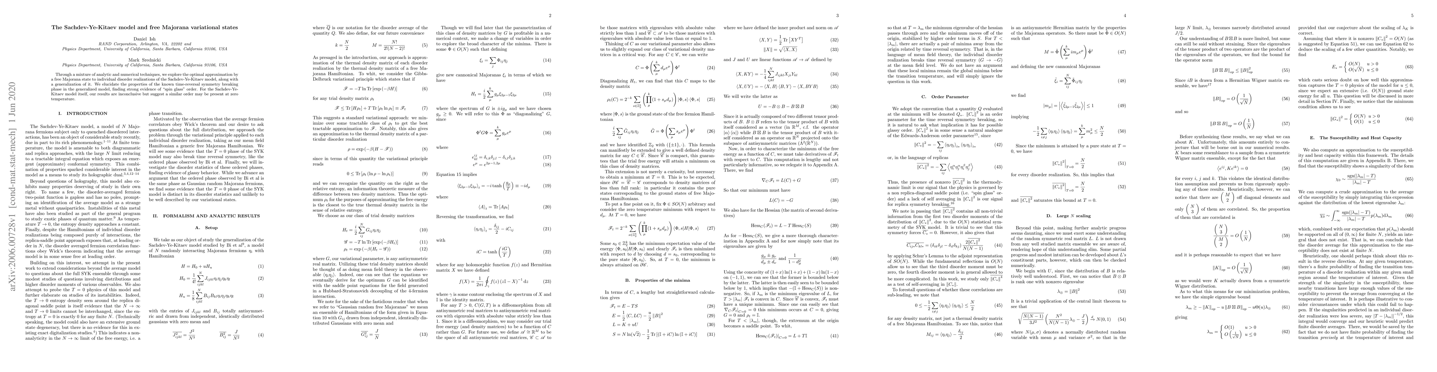 This paper uses analytic and numerical methods to investigate the optimal approximation of the Sachdev-Ye-Kitaev model by free Majorana states, finding evidence for "spin glass" order in the generalized model and suggesting potential zero-temperature order in the original model.