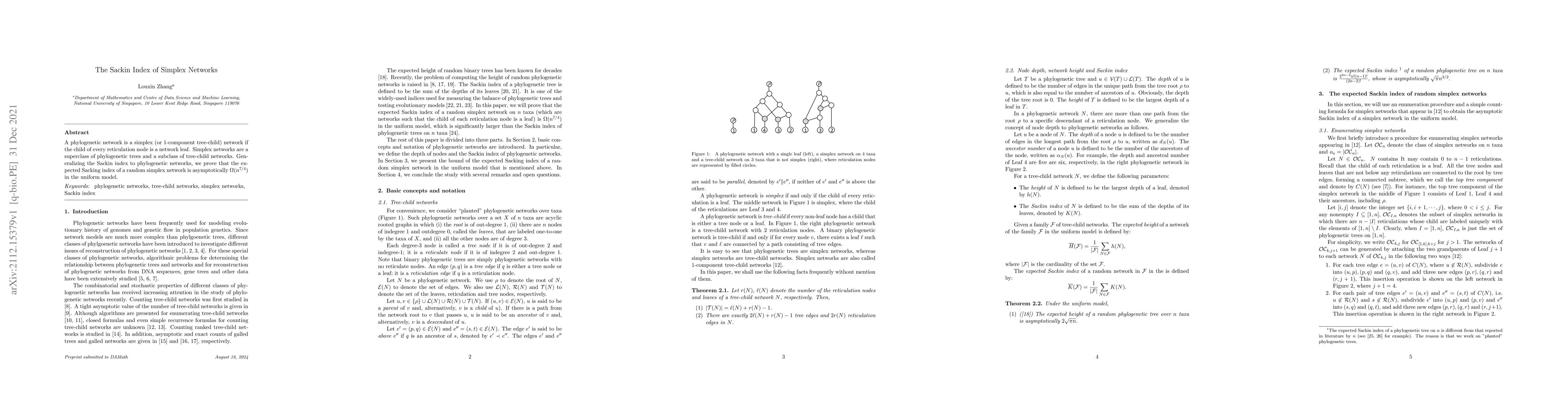 This paper generalizes the Sackin index to phylogenetic simplex networks, proving that the expected index for a random simplex network in the uniform model is asymptotically $\Omega(n^{7/4})$. Simplex networks are a subclass of tree-child networks and a superclass of phylogenetic trees.