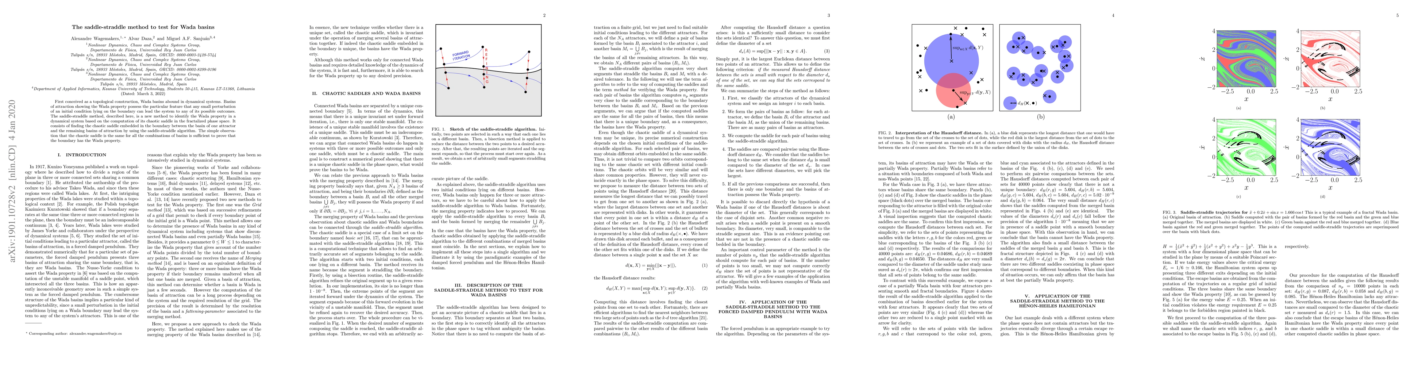 The saddle-straddle method identifies the Wada property in dynamical systems by locating the chaotic saddle on the boundary between basins of attraction. This method confirms the Wada property when the same chaotic saddle is found across all basin combinations.
