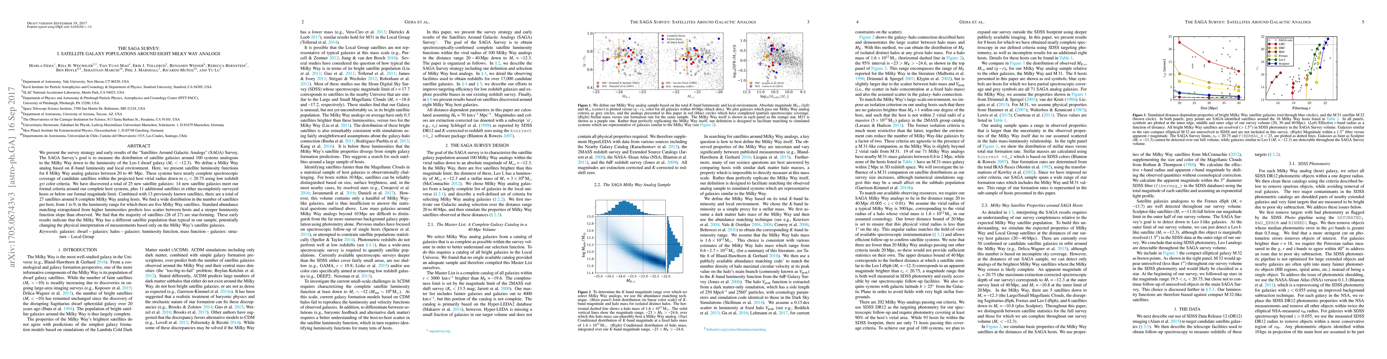 The SAGA Survey investigates satellite galaxy populations around eight Milky Way analogs, discovering 25 new satellites and finding a wide range of satellite numbers per host. The majority of satellites are star-forming, suggesting the Milky Way's satellite population differs from typical analogs, impacting interpretations based on Milky Way data alone.