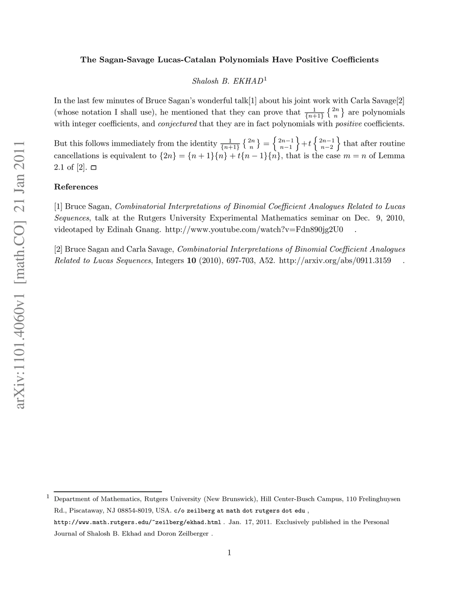 This short article answers a question asked by Bruce Sagan in the last few minutes of his wonderful talk (http://www.youtube.com/watch?v=Fdn890jg2U0), (describing joint work with Carla Savage) at the Rutgers University Experimental Mathematics seminar delivered on Dec. 9, 2010.
