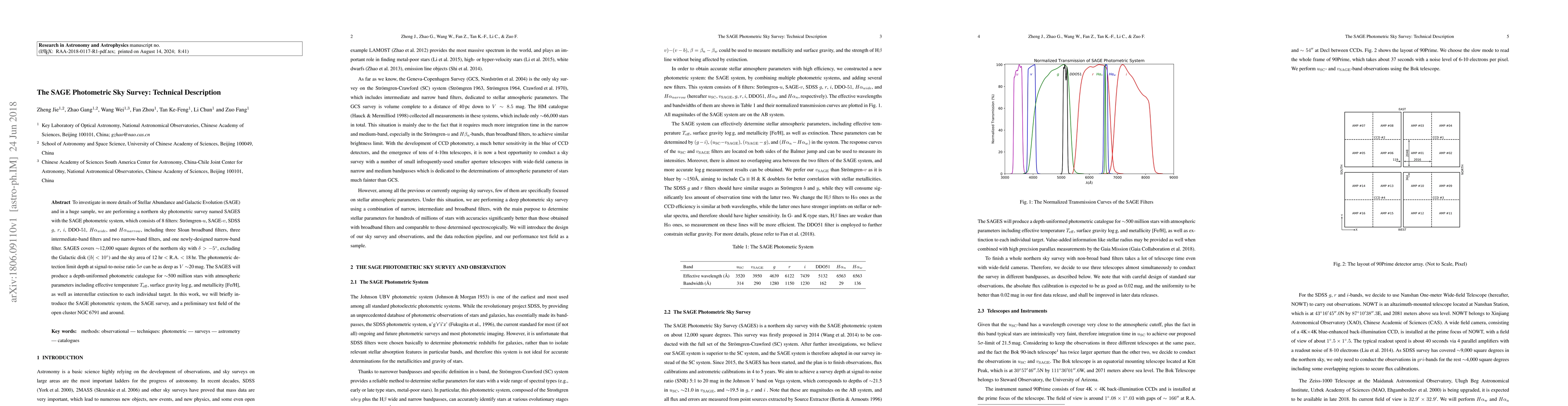 To investigate in more details of Stellar Abundance and Galactic Evolution (SAGE) and in a huge sample, we are performing a northern sky photometric survey named SAGES with the SAGE photometric system, which consists of 8 filters: Str\"omgren-$u$, SAGE-$v$, SDSS $g$, $r$, $i$, DDO-$51$, $H\alpha_{wide}$, and $H\alpha _{narrow}$, including three Sloan broadband filters, three intermediate-band filters and two narrow-band filters, and one newly-designed narrow-band filter. SAGES covers $\sim$12,000 square degrees of the northern sky with $\delta > -5 ^{\circ}$, excluding the Galactic disk ($|b|<10^{\circ}$) and the sky area of 12 hr $<$ R.A. $<$ 18\,hr. The photometric detection limit depth at signal-to-noise ratio $5\sigma$ can be as deep as $V\sim$20\,mag. The SAGES will produce a depth-uniformed photometric catalogue for $\sim$500 million stars with atmospheric parameters including effective temperature $T_{\rm eff}$, surface gravity log\,g, and metallicity [Fe/H], as well as interstellar extinction to each individual target. In this work, we will briefly introduce the SAGE photometric system, the SAGE survey, and a preliminary test field of the open cluster NGC\,6791 and around.