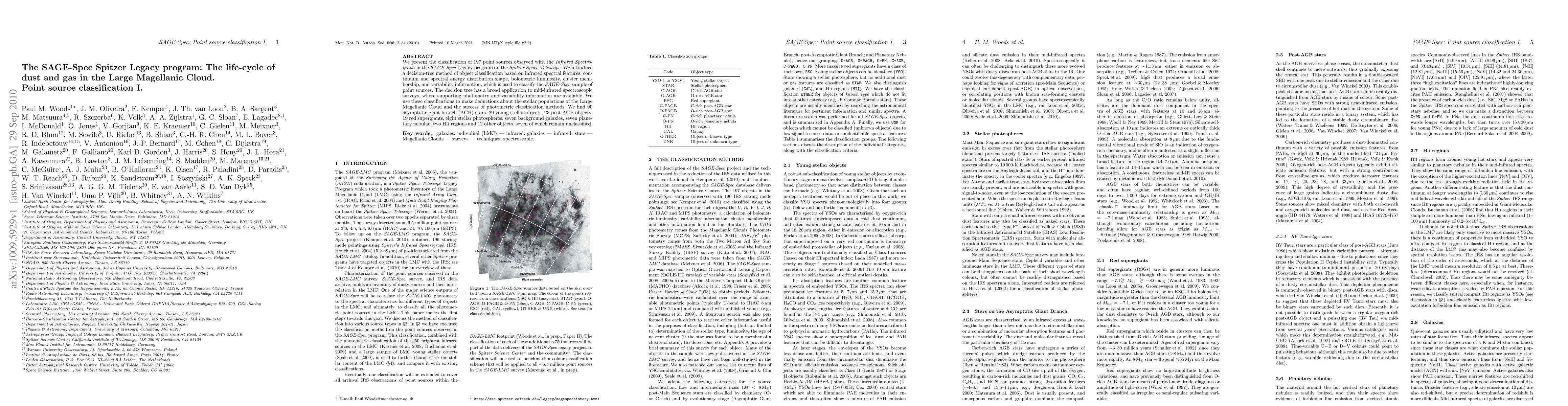 This paper classifies 197 point sources in the Large Magellanic Cloud using a decision-tree method based on infrared spectral features and other data, identifying various stellar populations and assessing the success of photometric classification methods. The classifications reveal diverse objects including asymptotic giant branch stars, young stellar objects, and background galaxies.