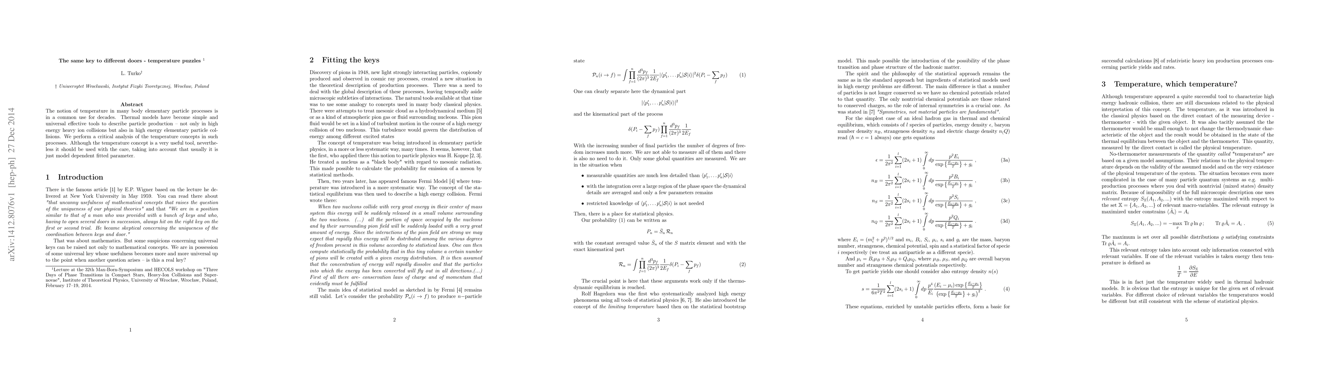 The notion of temperature in many body elementary particle processes is in a common use for decades. Thermal models have become simple and universal effective tools to describe particle production -- not only in high energy heavy ion collisions but also in high energy elementary particle collisions. We perform a critical analysis of the temperature concepts in such processes. Although the temperature concept is a very useful tool, nevertheless it should be used with the care, taking into account that usually it is just model dependent fitted parameter.