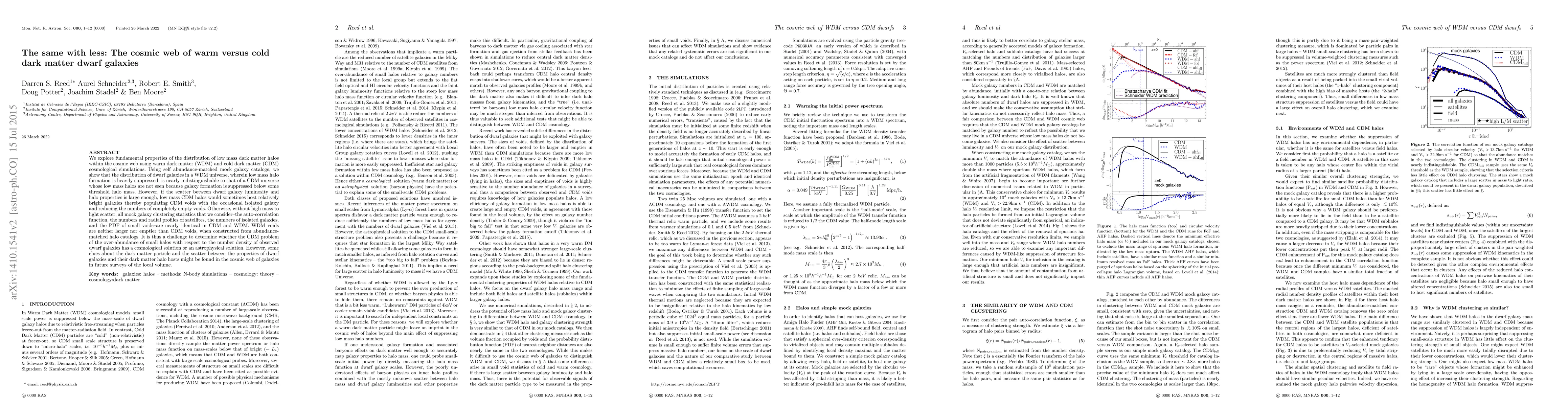 This paper compares the distribution of dwarf galaxies in warm dark matter (WDM) and cold dark matter (CDM) cosmological simulations, finding that their clustering statistics are nearly identical despite differences in low mass halo formation. The study suggests that future surveys may provide insights into the nature of dark matter and the reasons behind the over-abundance of small halos relative to observed dwarf galaxies.