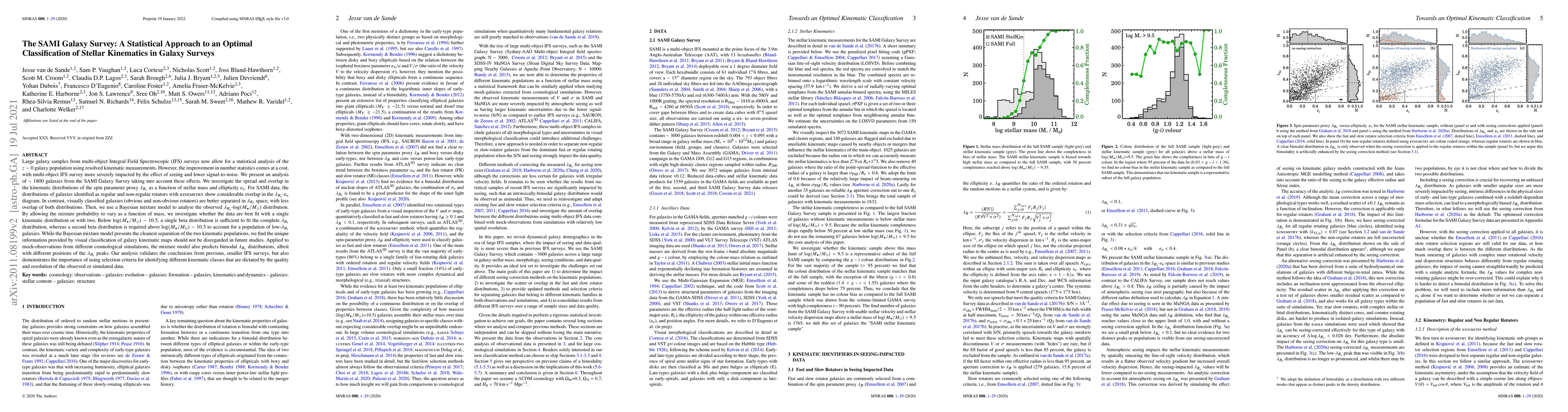 The SAMI Galaxy Survey analyzes ~1800 galaxies to statistically classify stellar kinematics, revealing significant overlap in kinematic distributions for regular and non-regular rotators. A Bayesian mixture model identifies two distinct populations based on stellar mass, emphasizing the need for data-driven kinematic classification criteria.