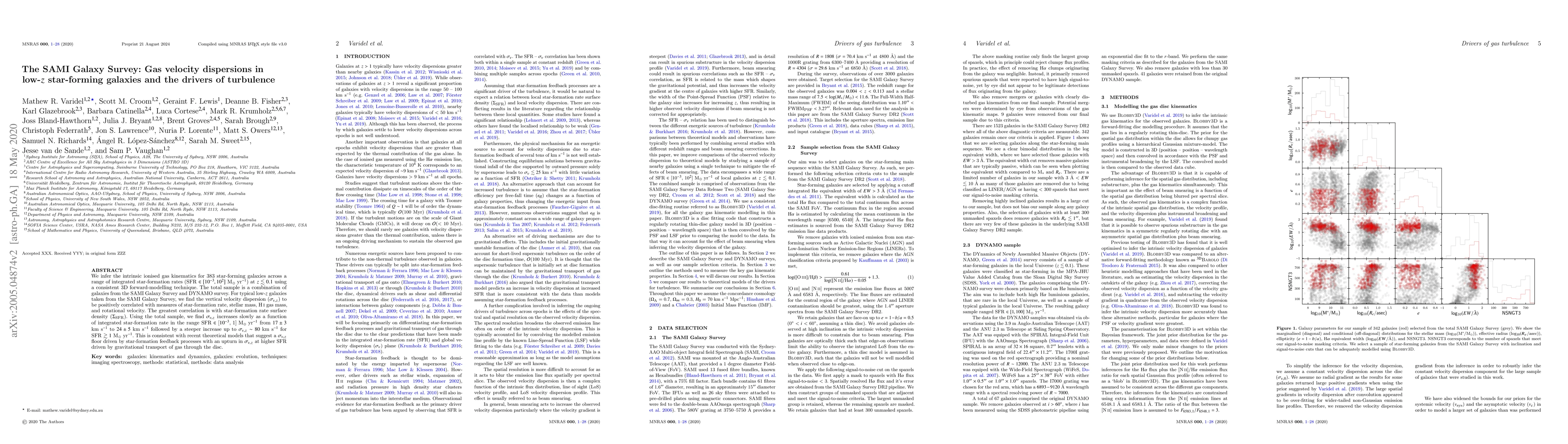 We infer the intrinsic ionised gas kinematics for 383 star-forming galaxies across a range of integrated star-formation rates (SFR $\in [10^{-3}, 10^2]$ M$_\odot$ yr$^{-1}$) at $z \lesssim 0.1$ using a consistent 3D forward-modelling technique. The total sample is a combination of galaxies from the SAMI Galaxy Survey and DYNAMO survey. For typical low-$z$ galaxies taken from the SAMI Galaxy Survey, we find the vertical velocity dispersion ($\sigma_{v, z}$) to be positively correlated with measures of star-formation rate, stellar mass, HI gas mass, and rotational velocity. The greatest correlation is with star-formation rate surface density ($\Sigma_\text{SFR}$). Using the total sample, we find $\sigma_{v, z}$ increases slowly as a function of integrated star-formation rate in the range SFR $\in$ [$10^{-3}$, 1] M$_\odot$ yr$^{-1}$ from $17\pm3$ km s$^{-1}$ to $24\pm5$ km s$^{-1}$ followed by a steeper increase up to $\sigma_{v, z}$ $\sim 80$ km s$^{-1}$ for SFR $\gtrsim 1$ M$_\odot$ yr$^{-1}$. This is consistent with recent theoretical models that suggest a $\sigma_{v, z}$ floor driven by star-formation feedback processes with an upturn in $\sigma_{v, z}$ at higher SFR driven by gravitational transport of gas through the disc.