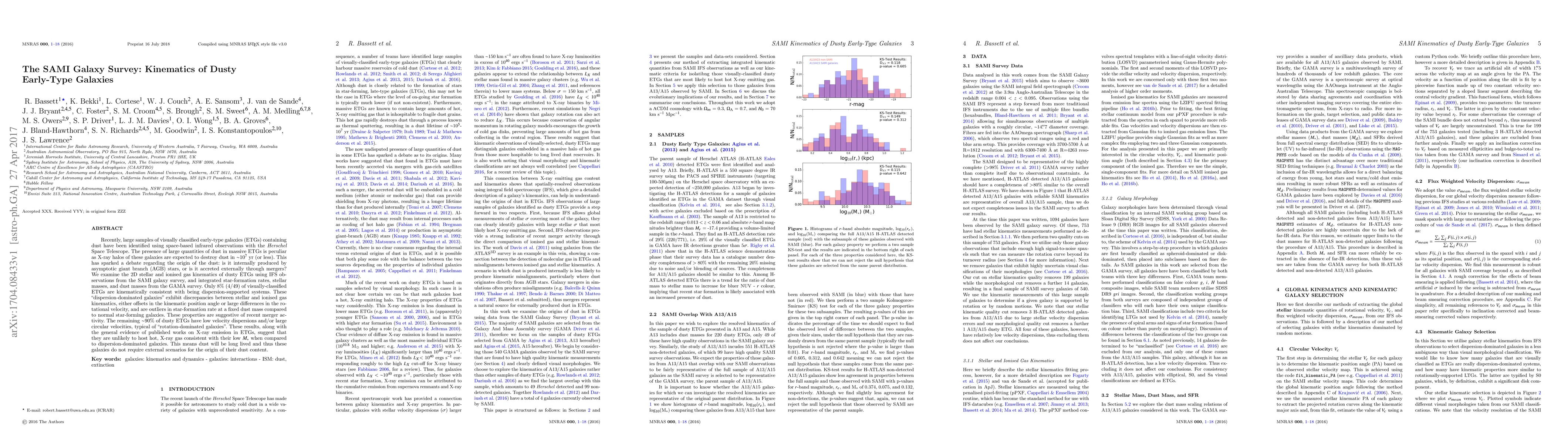 Recently, large samples of visually classified early-type galaxies (ETGs) containing dust have been identified using space-based infrared observations with the Herschel Space Telescope. The presence of large quantities of dust in massive ETGs is peculiar as X-ray halos of these galaxies are expected to destroy dust in 10 Myr (or less). This has sparked a debate regarding the origin of the dust: is it internally produced by asymptotic giant branch (AGB) stars, or is it accreted externally through mergers? We examine the 2D stellar and ionised gas kinematics of dusty ETGs using IFS observations from the SAMI galaxy survey, and integrated star-formation rates, stellar masses, and dust masses from the GAMA survey. Only 8% (4/49) of visually-classified ETGs are kinematically consistent with being dispersion-supported systems. These "dispersion-dominated galaxies" exhibit discrepancies between stellar and ionised gas kinematics, either offsets in the kinematic position angle or large differences in the rotational velocity, and are outliers in star-formation rate at a fixed dust mass compared to normal star-forming galaxies. These properties are suggestive of recent merger activity. The remaining 90% of dusty ETGs have low velocity dispersions and/or large circular velocities, typical of "rotation-dominated galaxies". These results, along with the general evidence of published works on X-ray emission in ETGs, suggest that they are unlikely to host hot, X-ray gas consistent with their low stellar mass when compared to dispersion-dominated galaxies. This means dust will be long lived and thus these galaxies do not require external scenarios for the origin of their dust content.
