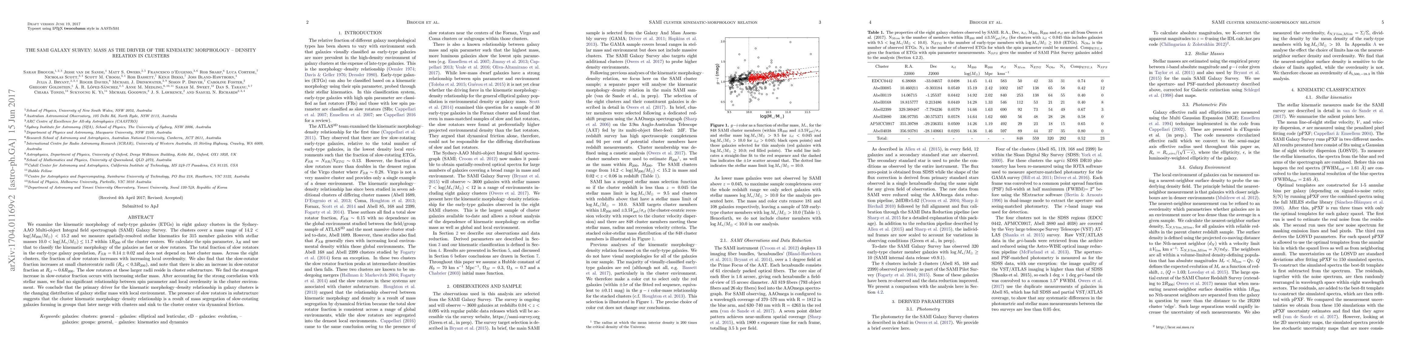 (SAMI) Galaxy Survey. The clusters cover a mass range of