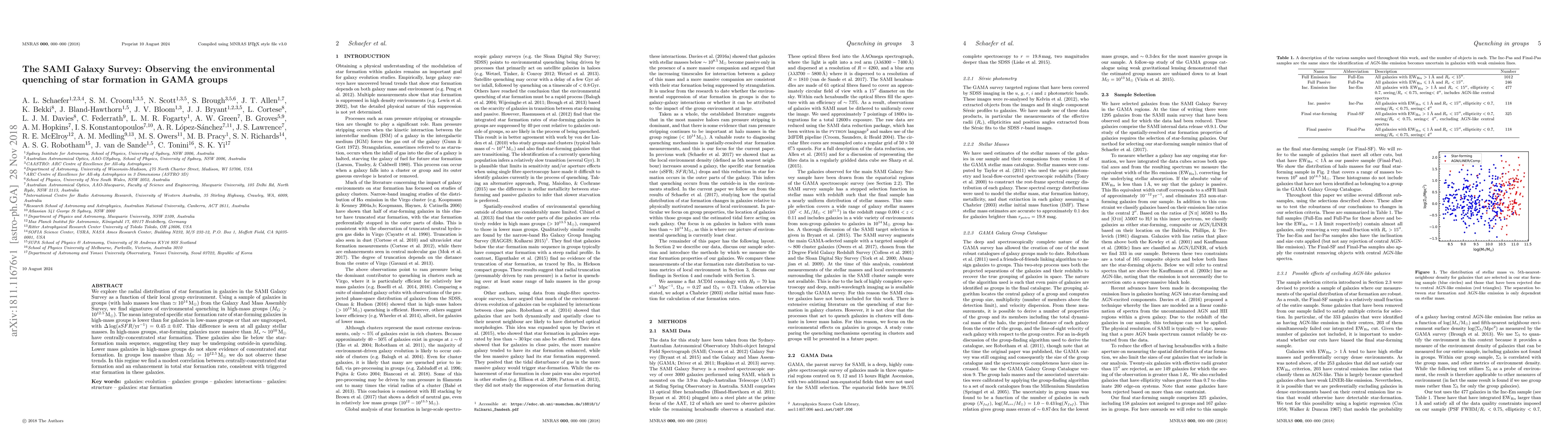 The SAMI Galaxy Survey reveals that star formation in galaxies within high-mass groups ($M_{G} > 10^{12.5} \, \mathrm{M_{\odot}}$) is significantly quenched compared to those in low-mass groups or ungrouped galaxies, with a notable reduction in the specific star formation rate. Larger galaxies in high-mass groups exhibit centrally-concentrated star formation and lie below the star-formation main sequence, indicating possible outside-in quenching.