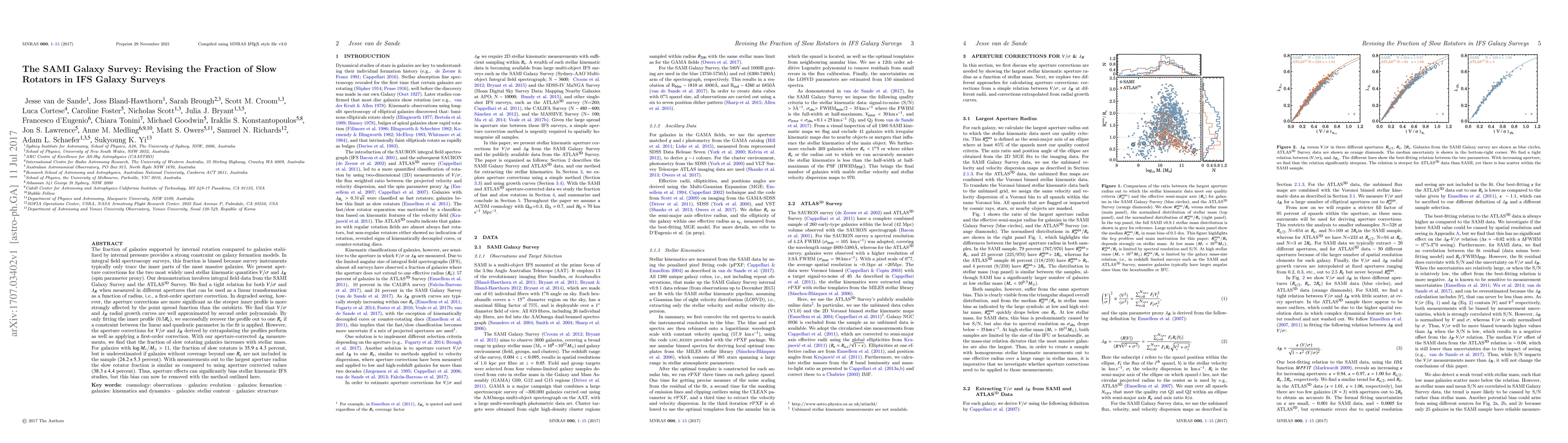 The SAMI Galaxy Survey demonstrates that aperture corrections for stellar kinematic quantities $V/\sigma$ and $\lambda_{R}$ can mitigate biases in the fraction of slow rotator galaxies in integral field spectroscopy surveys. The study finds that the fraction of slow rotators increases with stellar mass, correcting previous underestimations due to aperture effects.