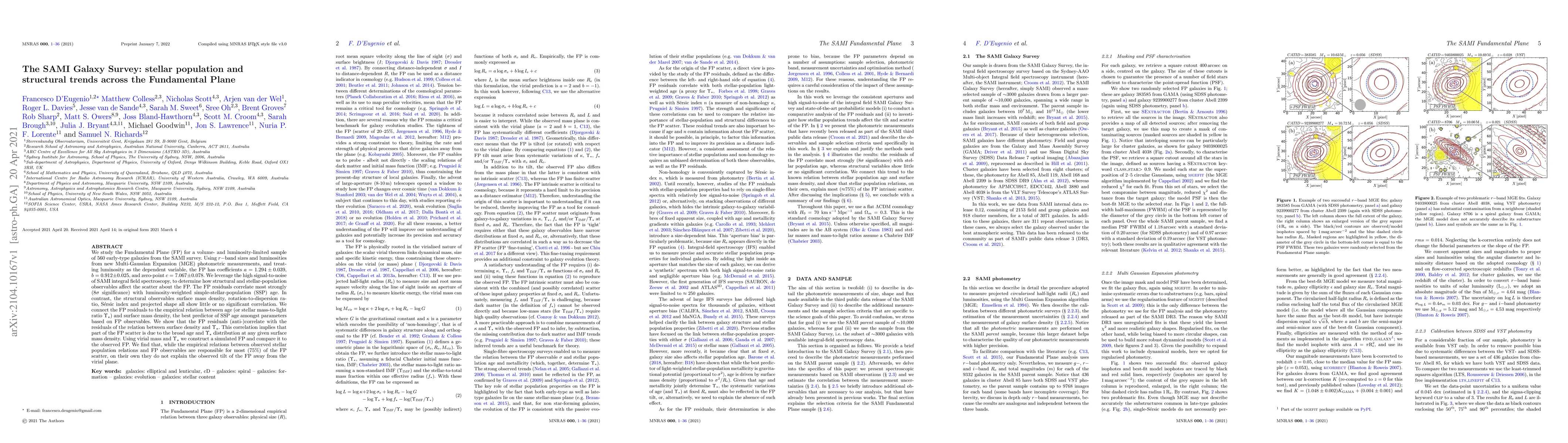 The SAMI Galaxy Survey found that stellar population age is the main cause of scatter on the Fundamental Plane, while structural parameters have little effect, suggesting a link between age and surface mass density.