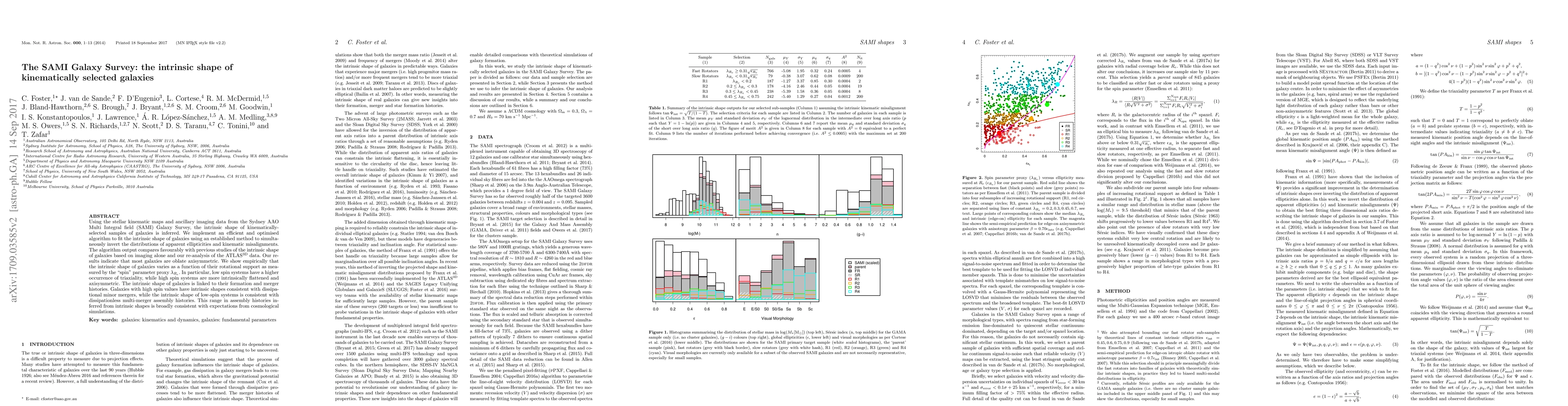 This study uses galaxy survey data to infer the intrinsic shape of galaxies, finding most are oblate axisymmetric and that shape varies with rotational support and merger history.
