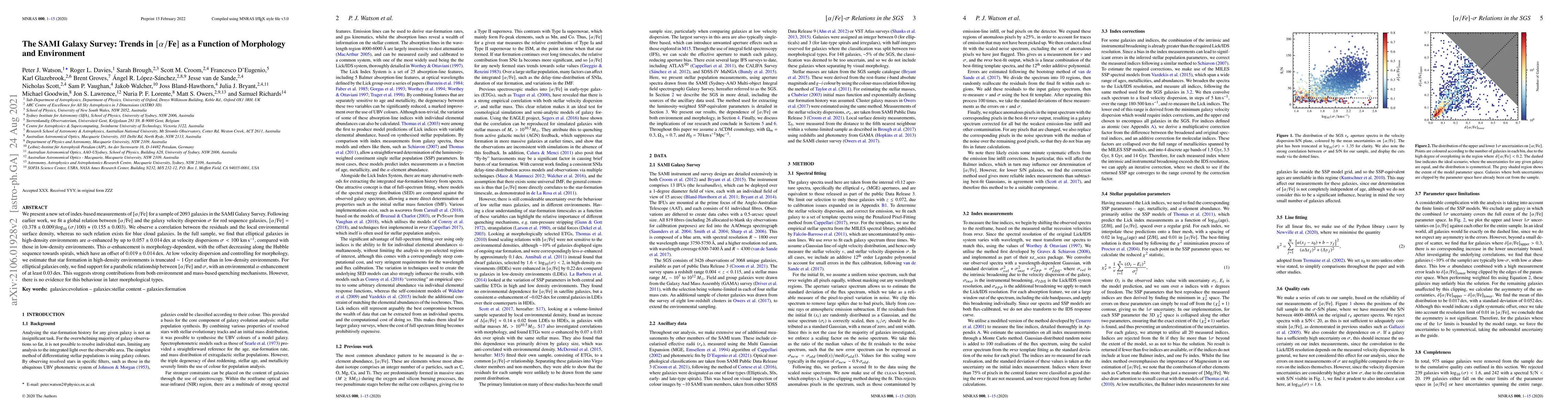 The research utilizes the SAMI Galaxy Survey, measuring [\alpha/Fe] for 2093 galaxies, separating them by color, morphology, and environment. It fits linear relations between [\alpha/Fe] and velocity dispersion \sigma, investigating environmental and morphological dependencies.