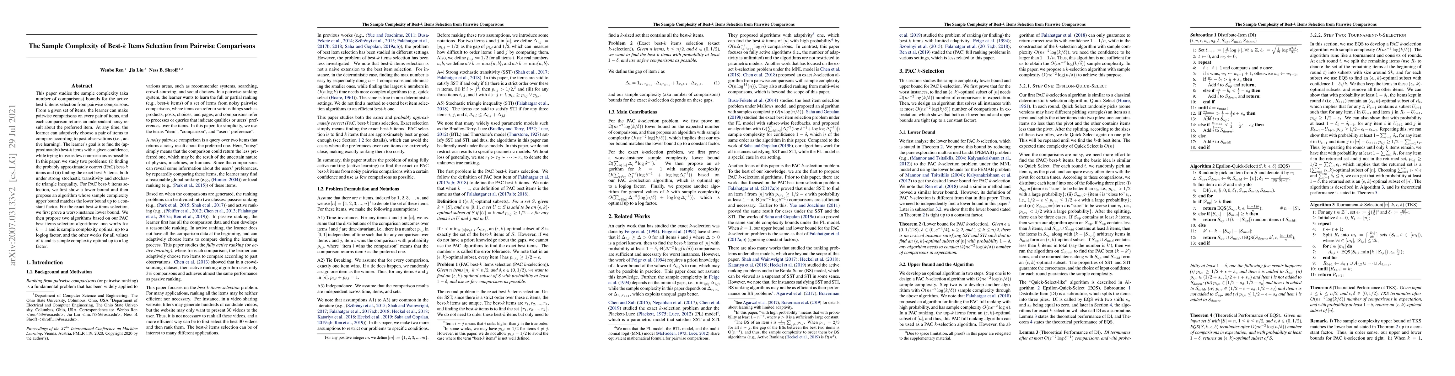 This paper investigates the sample complexity required for selecting the best-$k$ items from pairwise comparisons under noisy conditions. It proposes algorithms for both probably approximately correct (PAC) and exact best-$k$ items selection, achieving optimal sample complexity bounds up to constant factors.