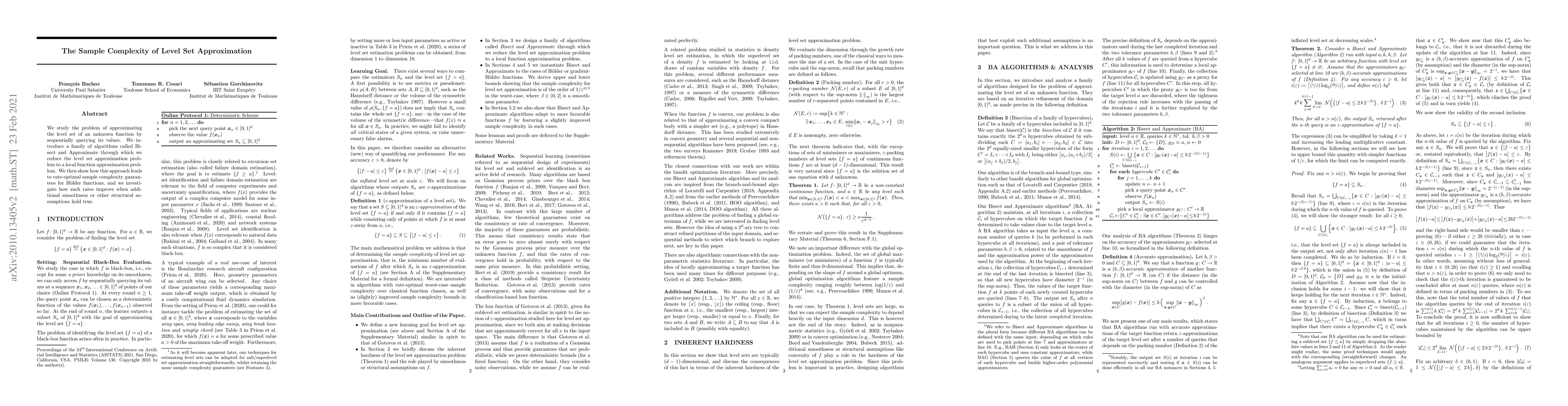 The paper develops a new approach to approximating level sets of unknown functions using Bisect and Approximate algorithms, achieving rate-optimal sample complexity guarantees for H"{o}lder functions. The results improve under additional smoothness or structural assumptions.
