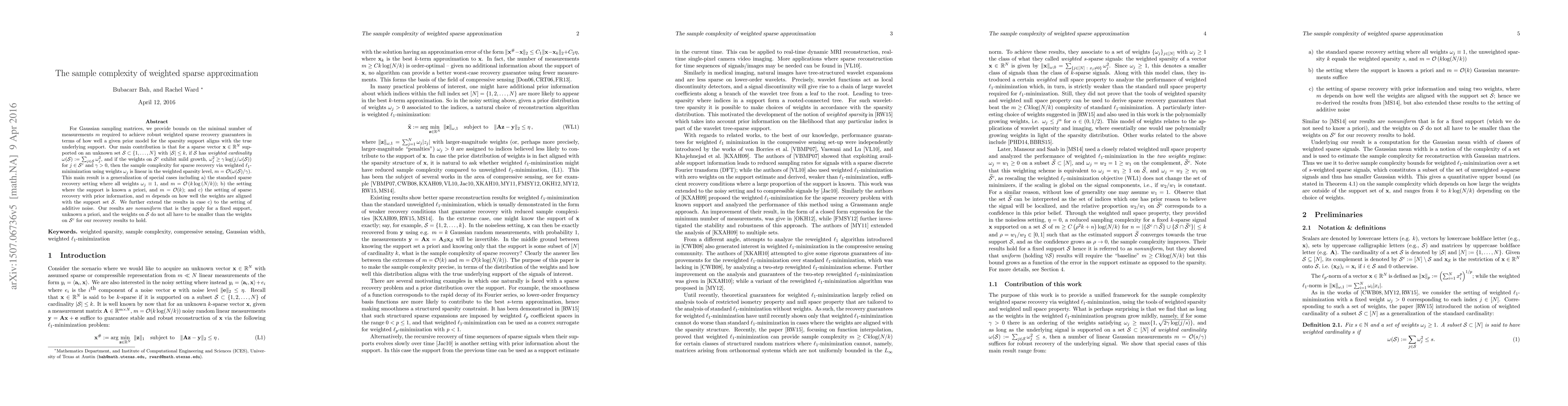 Researchers found that to achieve robust sparse recovery guarantees, only a linear number of measurements are needed if the support set has weighted cardinality and the weights on the complement set exhibit mild growth.