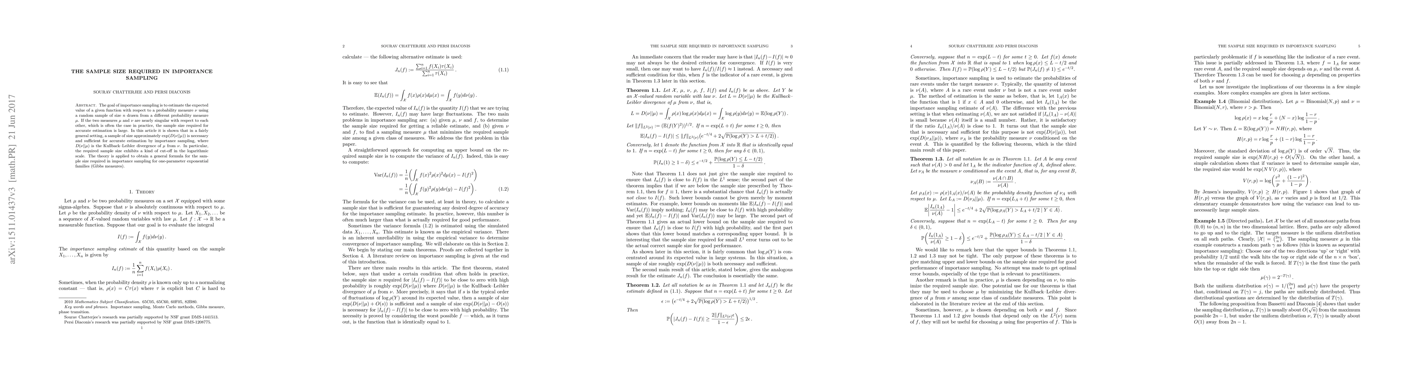 This research determines that the sample size needed for accurate importance sampling is approximately exp(D(ν||μ)), where D(ν||μ) is the Kullback-Leibler divergence between measures μ and ν. This theory is applied to one-parameter exponential families, providing a general sample size formula for these cases.