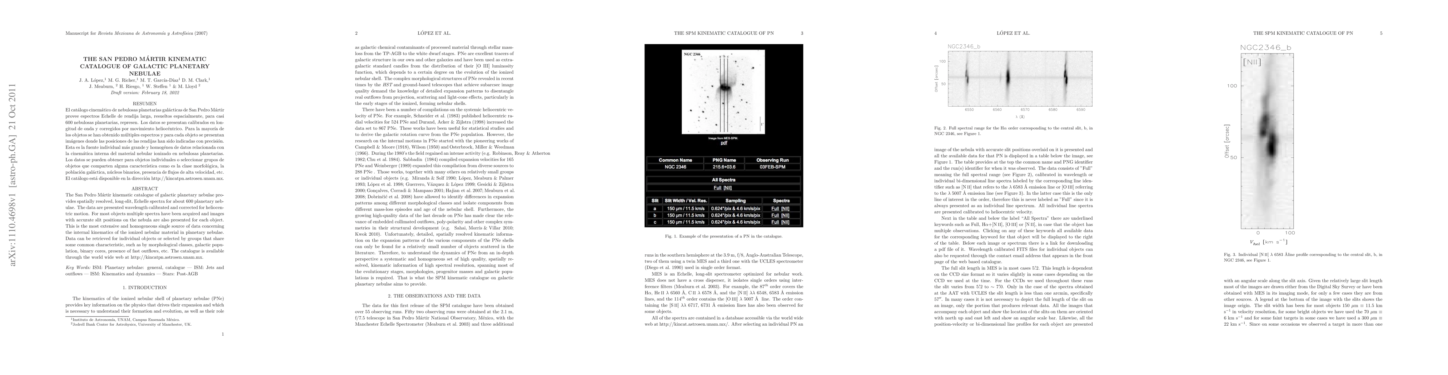The San Pedro M'artir kinematic catalogue offers comprehensive, spatially resolved spectra for around 600 planetary nebulae, providing insights into their internal kinematics and accessible via the web. It includes multiple spectra and images for each object, facilitating detailed studies of various nebular characteristics.