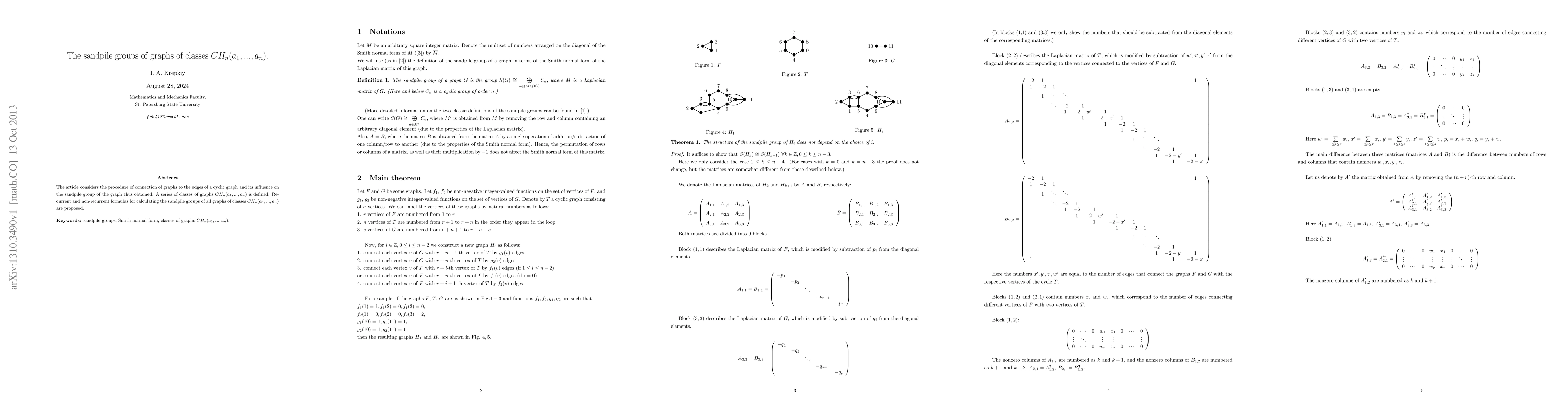 The paper explores how connecting graphs to the edges of a cyclic graph affects the sandpile group, defining classes CH_n(a_1,...,a_n) and proposing formulas for calculating their sandpile groups.