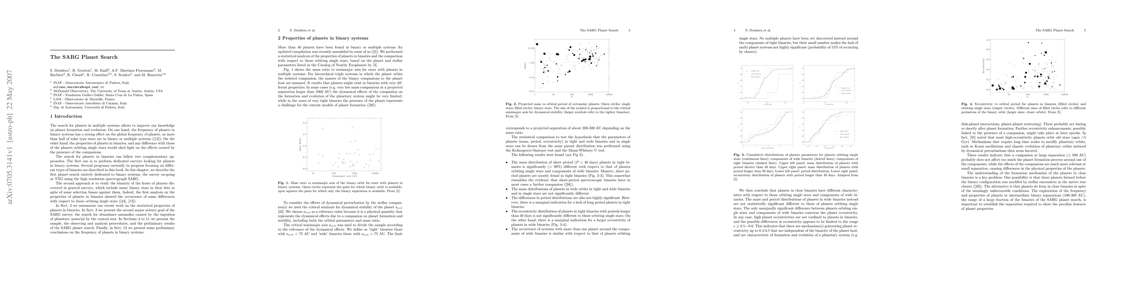 The SARG Planet Search utilizes the high-resolution spectrograph SARG at TNG to monitor radial velocities of moderately wide binary systems with similar components, aiming to study planetary systems in binaries and search for abundance anomalies caused by planetary ingestion.