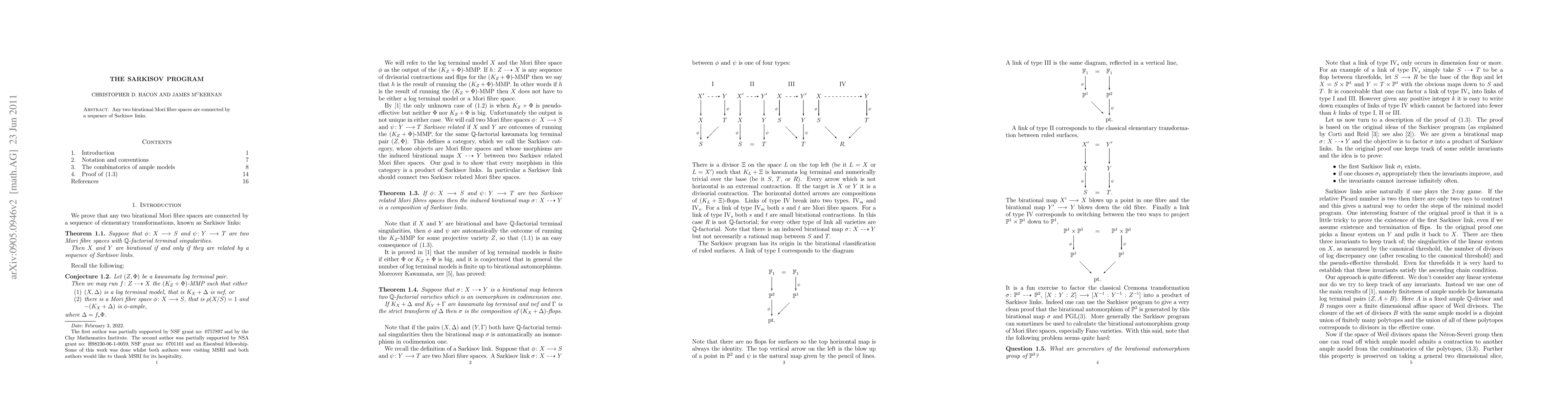 Any two birational Mori fibre spaces are connected by a sequence of Sarkisov links.
