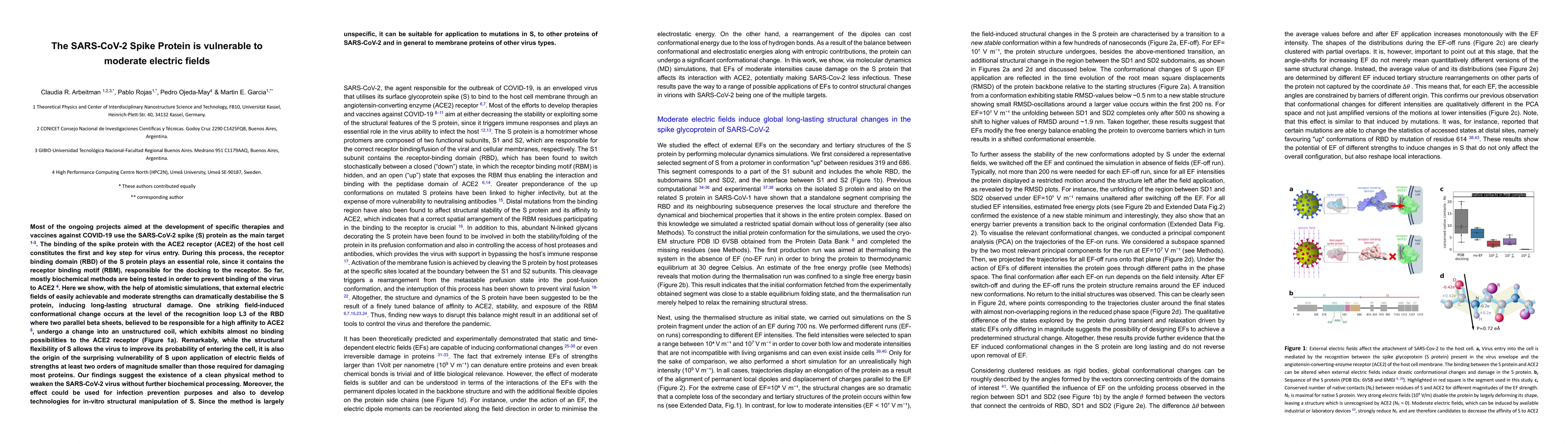This paper demonstrates that moderate electric fields can destabilize the SARS-CoV-2 spike protein, particularly affecting its receptor binding domain and reducing its affinity for the ACE2 receptor. The findings suggest a potential physical method for weakening the virus and preventing infection, applicable to various viral proteins.