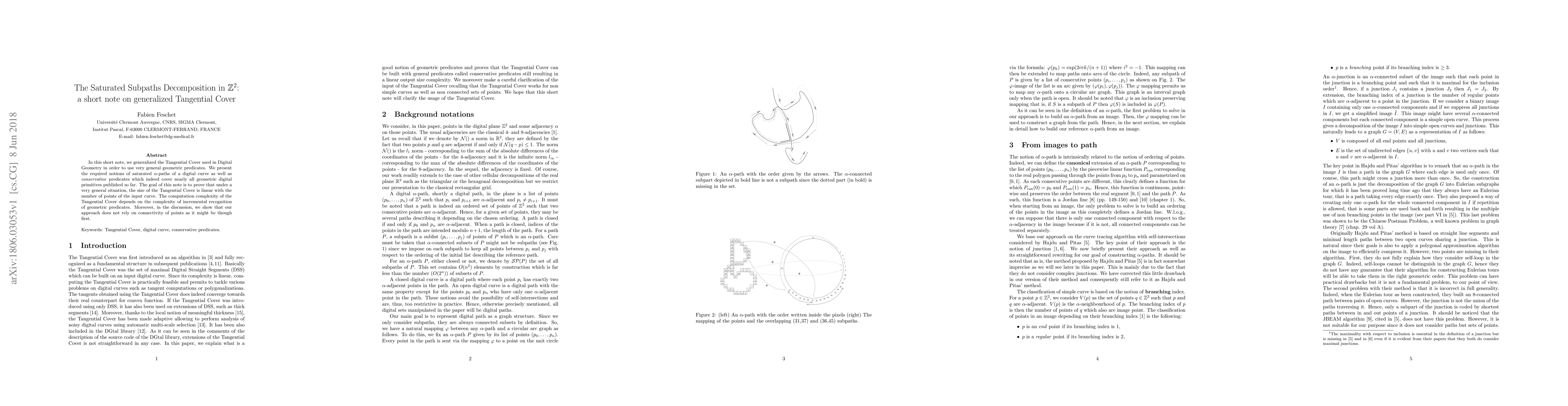 In this short note, we generalized the Tangential Cover used in Digital Geometry in order to use very general geometric predicates. We present the required notions of saturated $\alpha$-paths of a digital curve as well as conservative predicates which indeed cover nearly all geometric digital primitives published so far. The goal of this note is to prove that under a very general situation, the size of the Tangential Cover is linear with the number of points of the input curve. The computation complexity of the Tangential Cover depends on the complexity of incremental recognition of geometric predicates. Moreover, in the discussion, we show that our approach does not rely on connectivity of points as it might be though first.